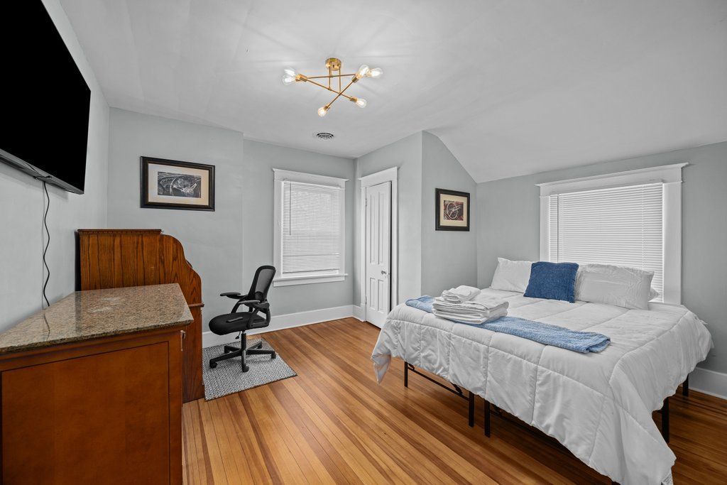 Nestled in the historic Fulton subdivision, this Dutch Colonial charmer at 1200 E 9th Street blends timeless elegance with modern upgrades. Boasting 5 bedrooms (3 upstairs, 2 downstairs) and 4 baths, the home offers potential for two additional bedrooms-perfect for entertaining and creative spaces. The interior is freshly painted, showcasing gorgeous hardwood floors, vinyl windows, and a brand-new kitchen. Much of the home has been thoughtfully replumbed, features new electrical, a new HVAC system, two new hot water heaters, updated bathrooms, a new sump pump, and a waterproofed basement-ensuring comfort and peace of mind. Outside, the stucco has been recently updated and painted, complemented by a newer roof. A lovely deck invites you to enjoy seasonal views of the Mississippi River, while the tree-lined street adds to the serene, historic ambiance. With approximately 3,000 sq ft of living space this home is a rare blend of character, craftsmanship, and contemporary convenience.