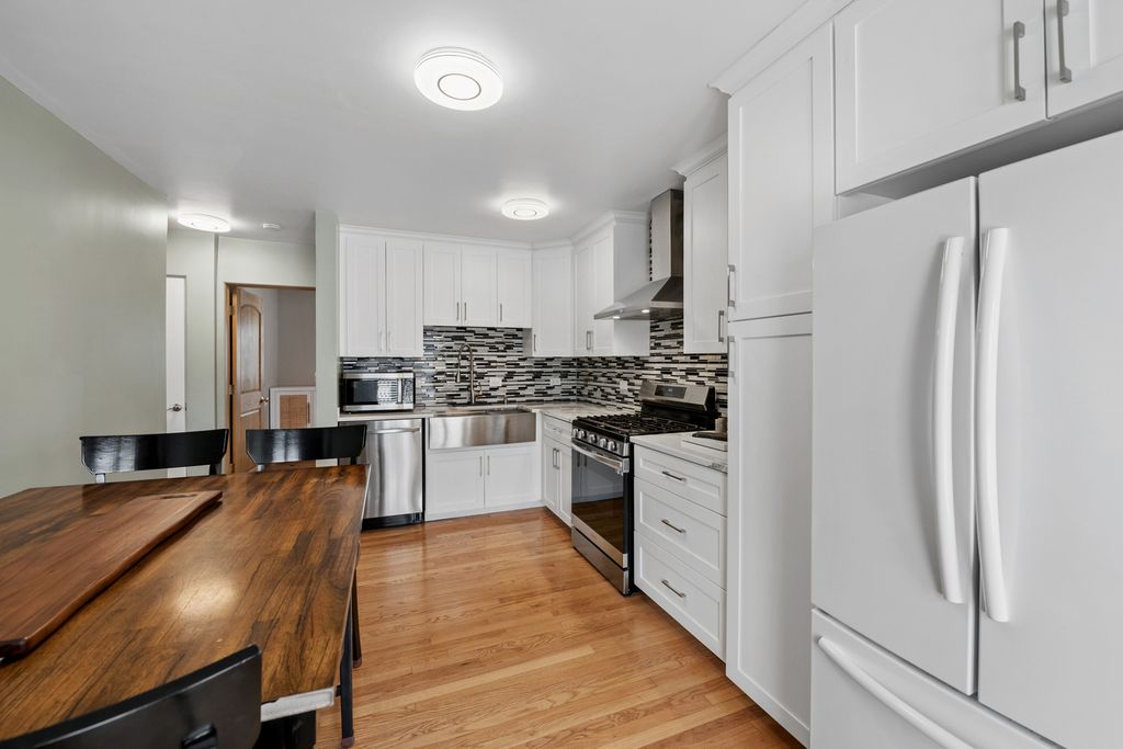All-brick 4-bedroom Berwyn home set on an oversized lot with a beautifully fenced yard and parking for 4 cars! This well-maintained property features a modern, updated kitchen with farmhouse sink, two spacious full bathrooms, and a partially finished basement with egress window-expanding the footprint of the home significantly. Enjoy hardwood floors throughout the main level and a cozy wood-burning fireplace that anchors the living room. Major mechanicals include central air and gas forced heat, along with 150 amp electrical service. Recent exterior improvements include new concrete in both the yard and 2.5 car garage, plus an additional parking pad-offering space for 2 additional cars. The expansive backyard is fully enclosed with a crisp vinyl fence, ideal for entertaining or relaxing outdoors. Generously sized bedrooms on every level and abundant storage in both the basement and garage complete the home. Conveniently located near fantastic Berwyn schools and just a short walk to downtown Berwyn's shops, dining, and amenities-this one checks all the boxes!