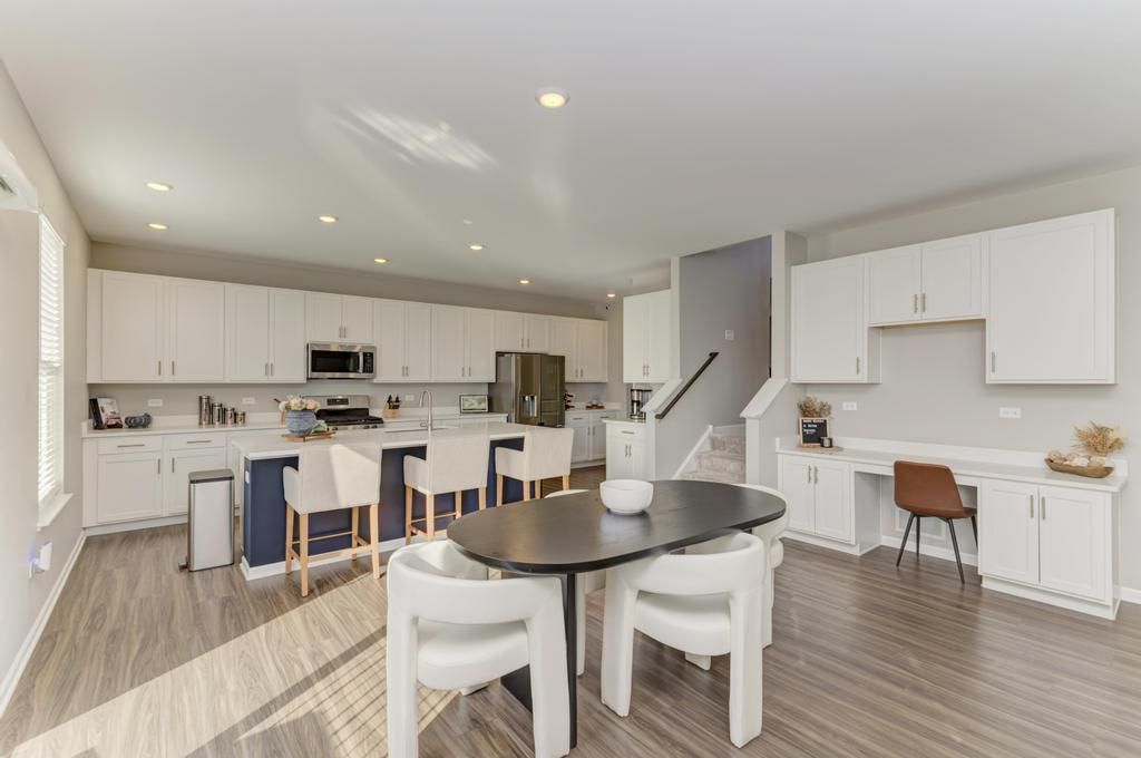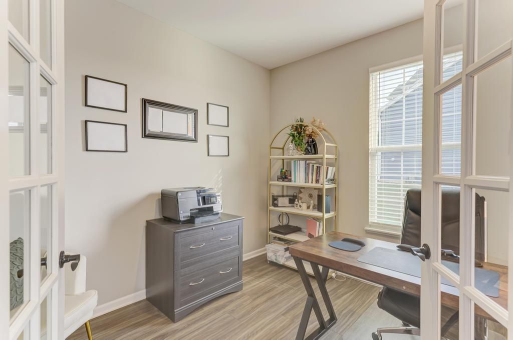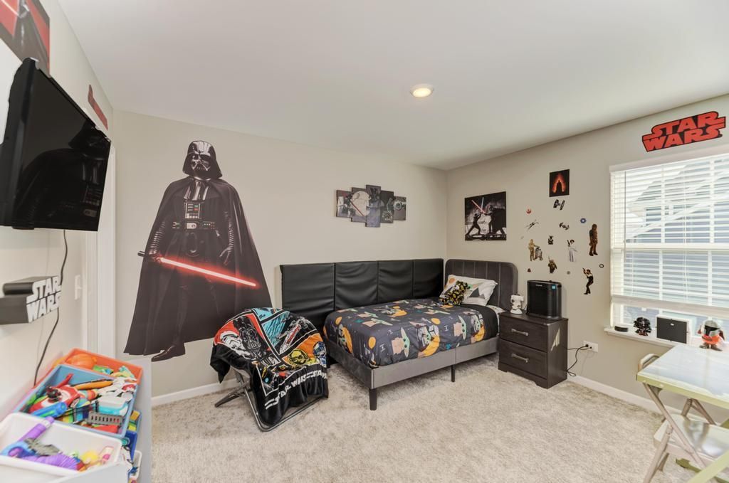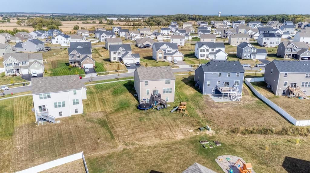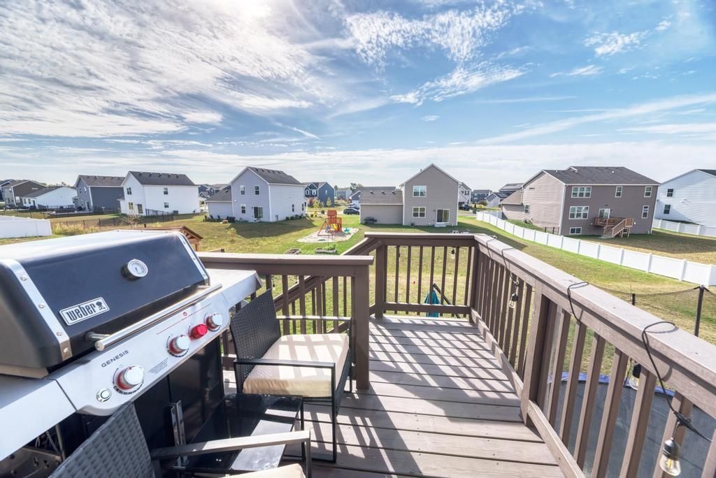 Experience refined living in this beautifully crafted 4-bedroom, 2.5-bath home offering 2,488 sq. ft. of sophisticated comfort and contemporary design. Every detail of this residence has been thoughtfully curated to balance elegance, functionality, and modern convenience. The main level welcomes you with premium LVL flooring, recessed lighting, and a seamless open-concept layout perfect for entertaining. The gourmet kitchen features quartz countertops, stainless steel smart appliances, a farm-style sink, and a butler's pantry-ideal for both everyday living and hosting with ease. An accent wall with a custom TV mount enhances the living space, while glass doors enclose the dedicated home office, offering both privacy and style. Upstairs, you'll find four spacious bedrooms, each featuring generous closets, plush carpeting, and 8-foot ceilings that create an airy, expansive feel. The primary suite provides a serene retreat, complemented by a luxurious ensuite bath, while the second-floor laundry-complete with an LG washer and dryer-adds convenience and efficiency. The secondary bath boasts a deep soaking tub and a linen closet for extra storage. The unfinished walkout basement comes equipped with a rough-in for future customization, allowing you to design your dream lower level. Step outside to the elevated deck with stairs, overlooking a spacious lot ready for outdoor enjoyment, complete with a children's playset and a prepped patio area below. Additional highlights include: Electric car charging outlet in garage, Faux wood blinds throughout, Wooden staircase railings, and Built-in humidifier. This exceptional home combines timeless craftsmanship with modern luxury-perfectly suited for those who appreciate style, comfort, and attention to detail. Schedule your tour now before it is gone.