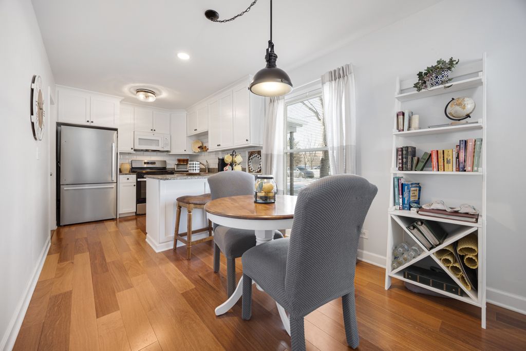 Paradise is right here! Incredibly remodeled ranch quad with no expense spared. Kitchen remodeled with custom white cabinets, granite counter and high end appliances. Living room is loaded with windows plus there is overhead lighting and this home has an open floor plan. Pre finished engineered hardwood flooring that is stunning! Bathroom remodeled and features a large walk in shower. Primary bedroom being used as an office has double closets. Laundry room has new washer and dryer. Located right by private Lake Cosman and the newly developed Marshall Park. Walk to shopping, library, Pavilion fitness center, movies, restaurants, coffee shops and more. Beautiful neighborhood surrounded by Busse Woods. Live the easy life here!