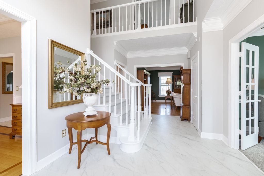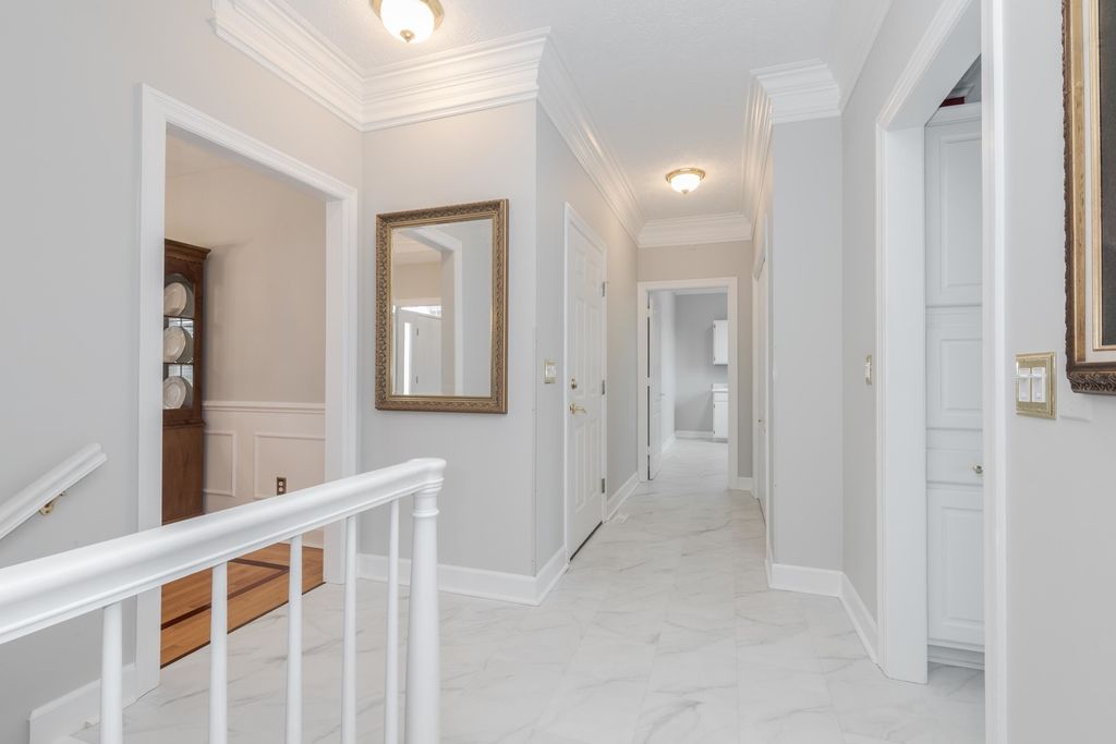 Fabulous house in a fabulous location with no backyard neighbors! This cul-de-sac setting is in a beautiful and established neighborhood in the center of town and convenient to everything. The amazing floor plan includes 3 baths on the second floor - the primary bath, another bedroom suite with a private bath, and a Jack-n-Jill bath. The spacious owner suite includes a walk-in closet and a wonderful bathroom arrangement with two separate sink areas, a separate toilet room, a soaking tub and a separate shower. On the main floor, you will appreciate the lovely foyer with the open stairway, the office, the large family room and kitchen, and the spacious laundry room with an abundance of cabinets and a sink. Most flooring on this level is hardwood or newer luxury vinyl plank. The kitchen, with updated Quartz counters, includes an extra area of cabinets with a prep sink/bar. In the lower level, you will find a huge family room, an excellent bar area, the 4th full bath and a den - there is plenty of storage space as well. There are so many quality finishes and features in this house including huge crown moldings, French doors, numerous areas with built-ins, 9' ceilings, and trey ceilings in multiple rooms. You will enjoy relaxing or entertaining on the lovely aggregate patio in the beautifully and professionally landscaped backyard. The HVAC system was replaced about 2 years ago. The windows have all been replaced with Andersen windows about 15 Years ago. There are new exterior doors, and a generator.