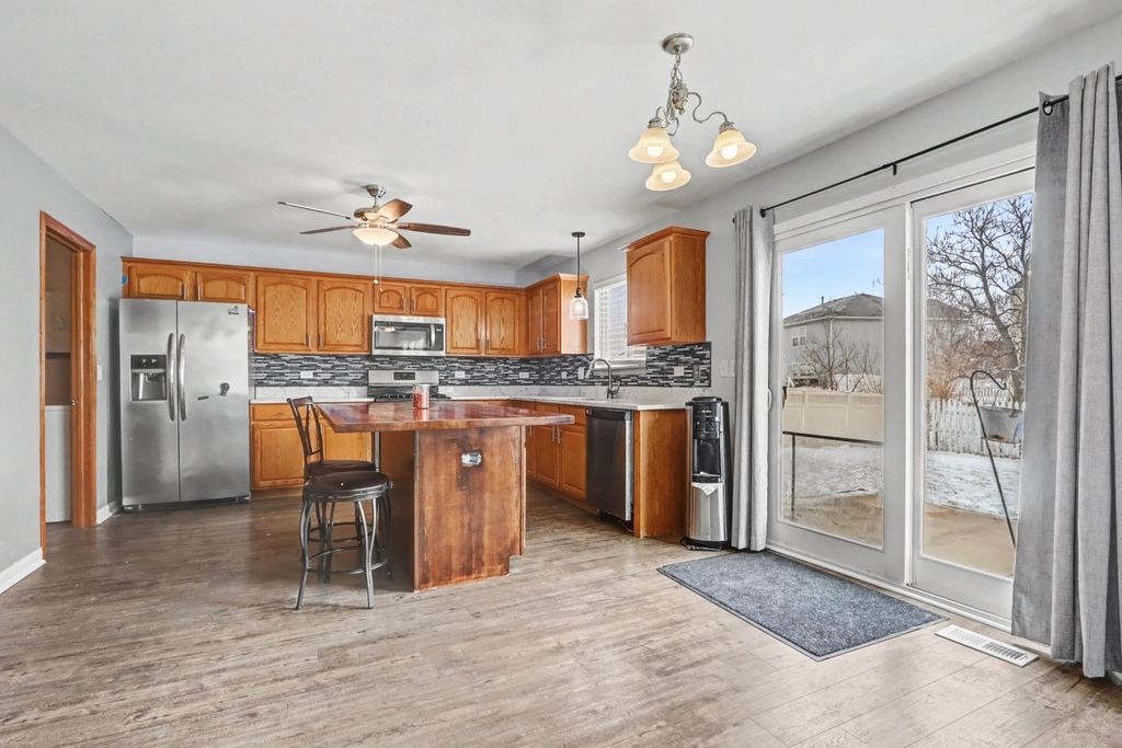 Large two-story home located in the popular Leighlinbridge subdivision of Manhattan! This spacious property offers 4 bedrooms and a finished basement, providing plenty of room for living, entertaining, and relaxing. The HUGE kitchen is a standout feature, complete with a center island and ample table space-perfect for gatherings and everyday living. Enjoy the convenience of a 3-car attached garage and a concrete driveway for added durability and curb appeal. The home is equipped with solar panels, offering energy efficiency and potential cost savings. Step outside to a fenced backyard featuring an above-ground pool-ideal for summer fun and outdoor enjoyment. UPDATES: Roof replaced in 2020, solar panels installed (approx 14 years left on lease). HVAC system is less than 1 year old.