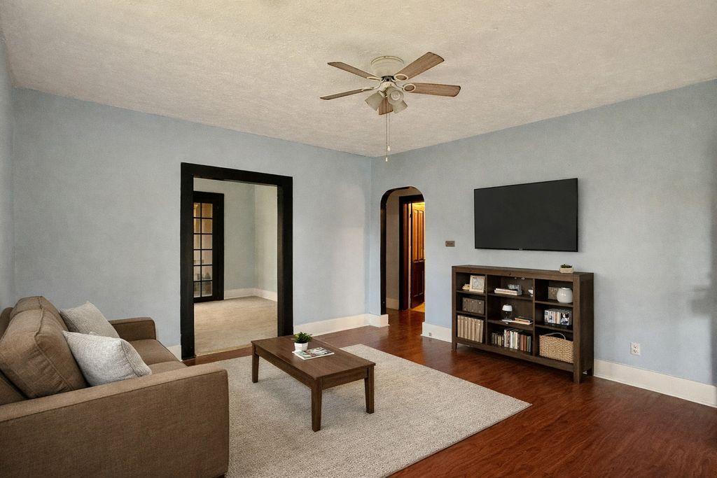 Charming 3-bedroom, 1-bath bungalow offering more space than expected and priced with condition in mind. A large covered, screened front porch provides a welcoming entry and great place to relax. Inside, the freshly painted interior features an eat-in kitchen with tile flooring and an updated tiled bathroom. The finished attic adds valuable living space with a third bedroom plus an area ideal for a playroom, office, or flex space. The home shows typical cosmetic wear with some nicks and dings but is structurally sound. Heat is operational; central air is not currently working, and window units are included. Oversized detached single-car garage offers excellent storage or workshop potential. Great opportunity for buyers looking to build equity. Some images have been enhanced for illustrative purposes, including virtual landscaping and/or furnishings. Actual property condition may differ.