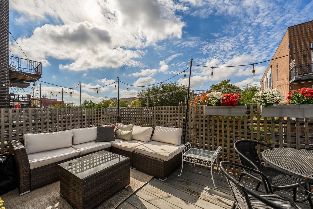 Perfect penthouse 2 bedroom 2 bath condo in the heart of Logan Square! Property has been expertly maintained and upgraded by the current owner. Amazing floorplan with open white kitchen featuring stone counters, breakfast bar, and stainless steel appliances, Large skylit living space with floor to ceiling windows, stunning white brick fireplace, built-in shelving and separate dining area! Primary suite with custom closets, renovated ensuite bath with dual vanity, deep soaking tub, and crisp subway tile tub surround! Great second bedroom and recently renovated hall bath! Private outdoor deck accessible via hallway! Hardwood floors throughout, In unit laundry, Garage parking and extra storage included! Long list of updates including window replacement, all major mechanical systems replaced by the sellers and more! Well maintained building with low assessments! Amazing location seconds to Armitage restaurants and shopping, 606 and Blue Line! Must see!