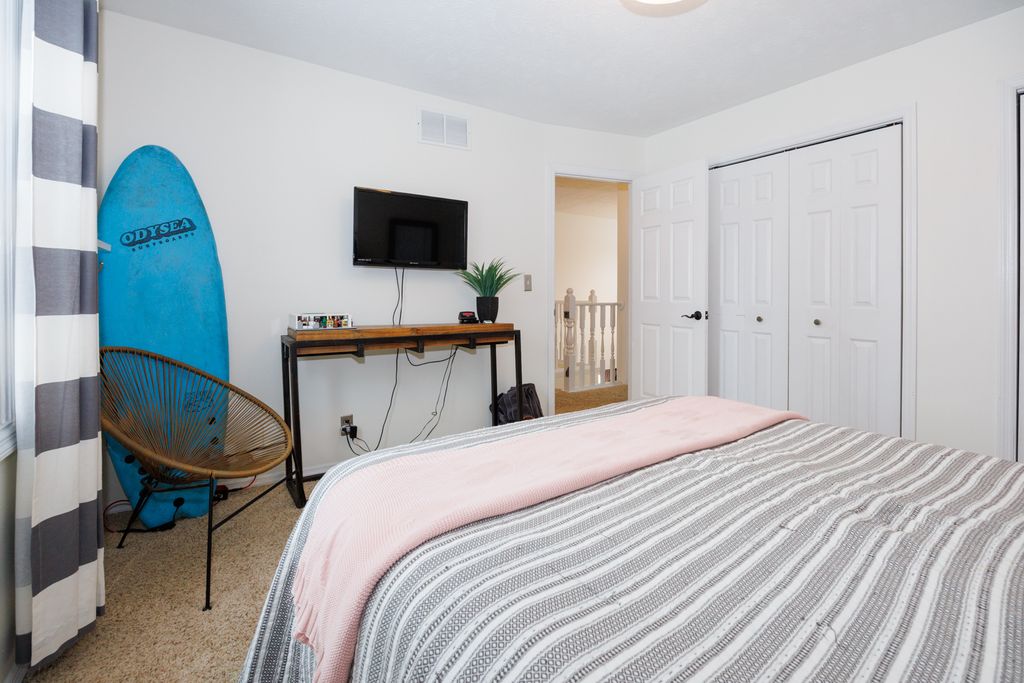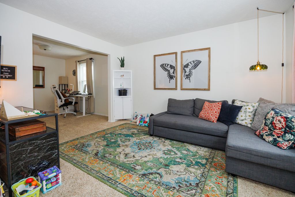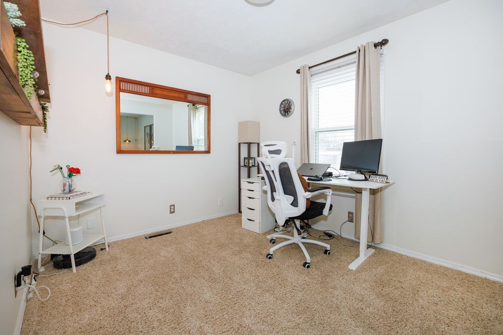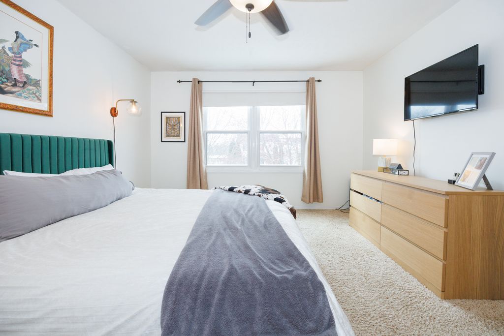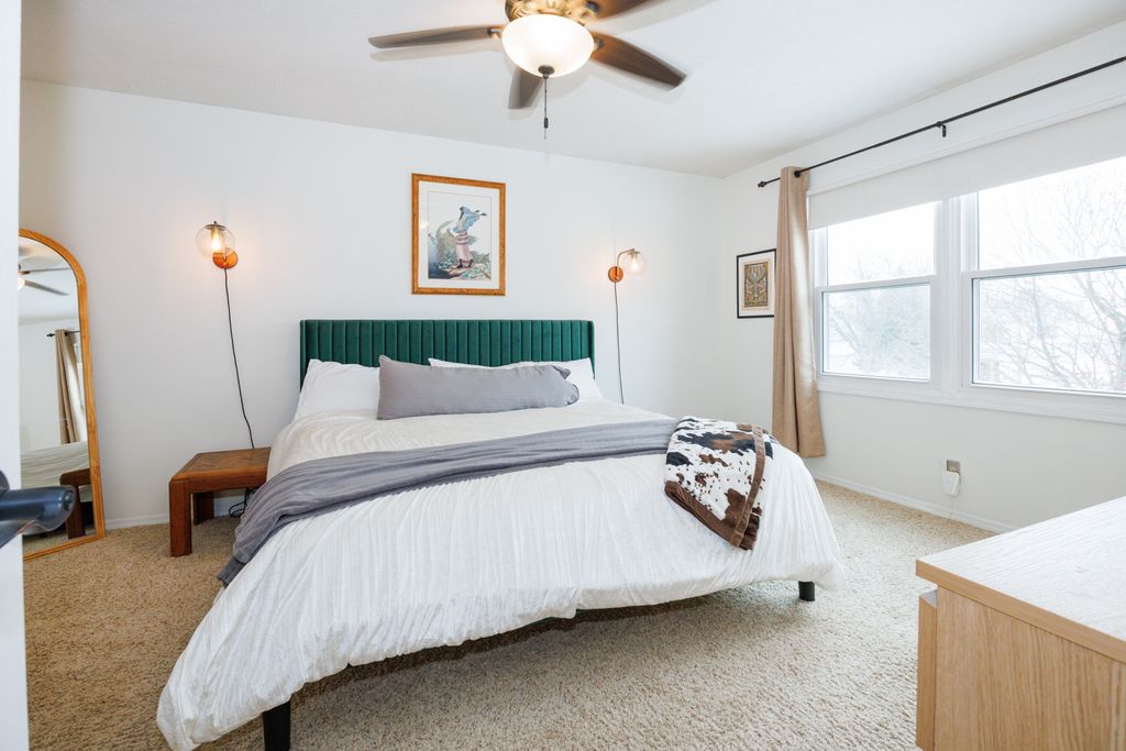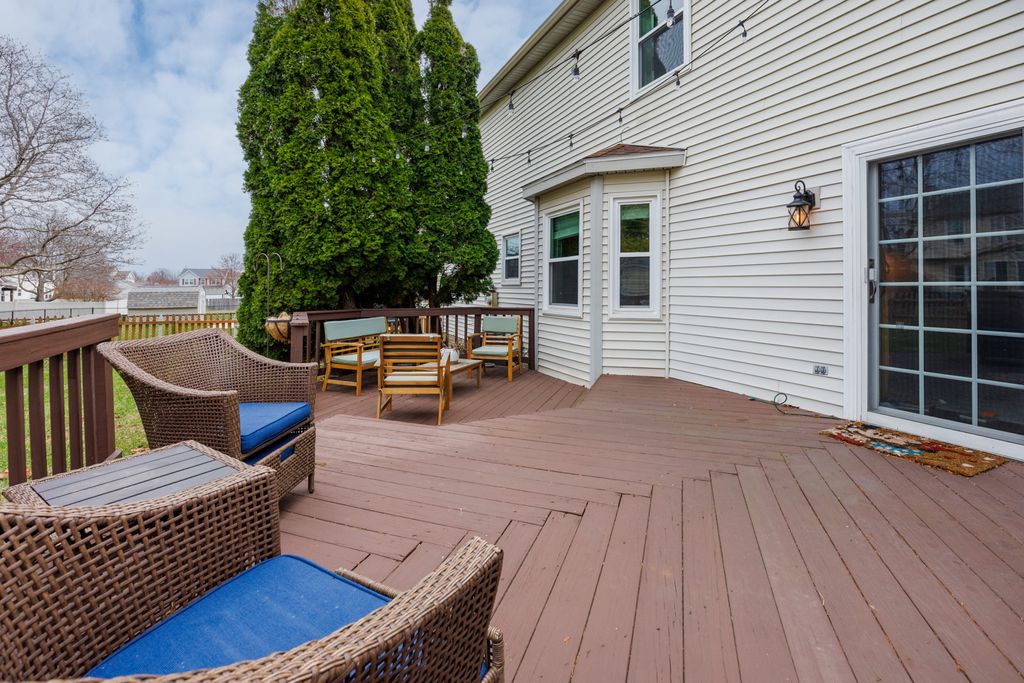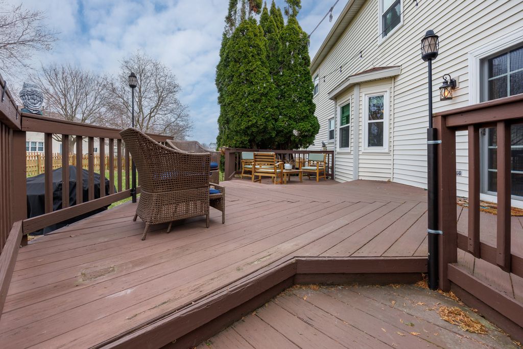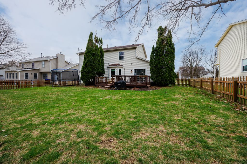 Welcome home to this move-in ready 3-bedroom, 2.5-bath home in Bloomington offering a bright and functional layout! The main floor features a gas log fireplace, with abundant natural light and multiple living spaces, including a living room, dining room, and family room. The kitchen includes a breakfast bar and opens to the family room, creating a great space for everyday living and entertaining. A main floor laundry hookup is available in the closet near the half bath, while the current laundry area is in the basement. Upstairs you'll find a spacious primary suite with a walk-in closet and private bath featuring a separate tub and shower, along with two additional bedrooms and a full hall bathroom with tub & shower. The finished basement provides extra living space perfect for a theater, playroom, or workout area, and includes a separate home office, plus a laundry area and plenty of storage. There is a rough in for a bath in the unfinished part of the basement. Step outside to enjoy the large deck overlooking the fully fenced backyard-ideal for relaxing, entertaining, or letting kids and pets play. Recent updates include new insulated garage door and belt opener (2026), all interior walls professionally painted except for bathrooms and closets (2024), windows (2020), kitchen counters (2020), dishwasher (2020), furnace and A/C (2018), and water heater (2016). Homes with this combination of space, updates, and move-in readiness don't last-schedule your private showing today!