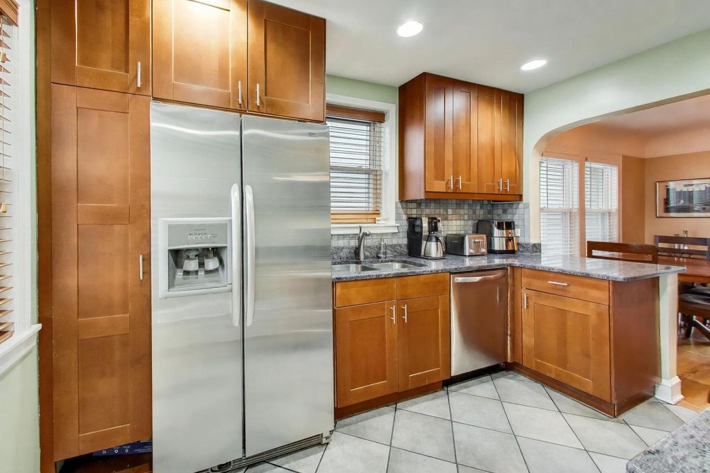 Charming brick English Tudor located in the highly sought-after Onahan school district! This spacious 4-bedroom, 3-bath home offers a full bathroom on every level and a versatile layout perfect for modern living. The second floor serves as a true primary retreat, featuring a full bath, office nook, double closets, and its own furnace (2008). While currently equipped with two window A/C units, the piping is already in place for easy central air installation. The main level showcases hardwood floors, a separate dining room, and two generously sized bedrooms. The kitchen is appointed with granite countertops, stainless steel appliances, and a cozy breakfast nook that overlooks the backyard.(dishwasher @ 5 years old, stove/fridge - older) The finished basement provides excellent additional living space, complete with a second kitchen (including fridge and stove), a dry bar, a fourth bedroom, and a full bathroom with a shower-ideal for guests or extended living arrangements. Major updates include a main furnace (2022) and central A/C (2021). The roof is approximately 10+ years old. The property also features a 1-car garage. Enjoy being part of a friendly block known for its annual block party, all while being conveniently located near parks, forest preserves, bike paths, shopping, dining, and neighborhood events.