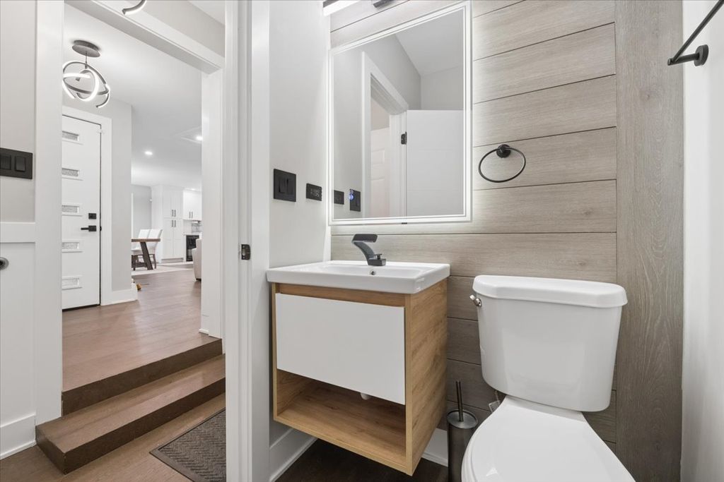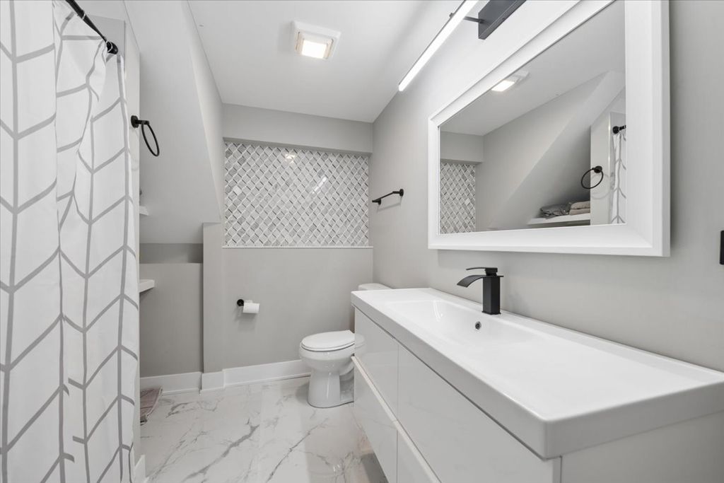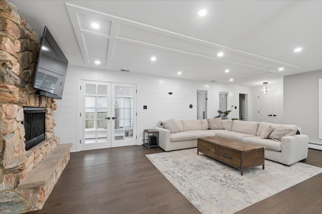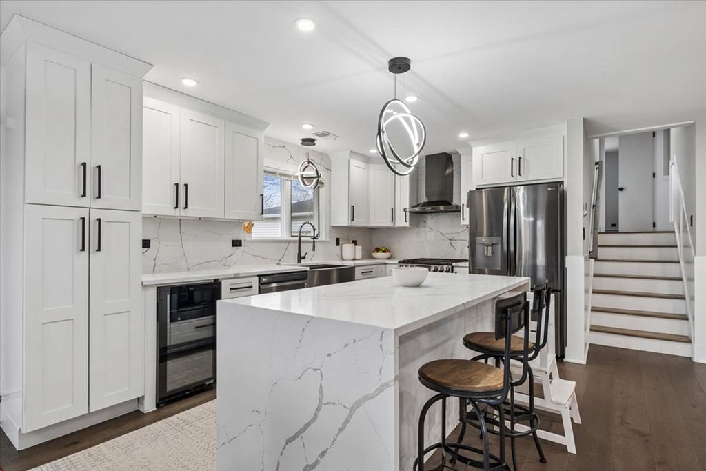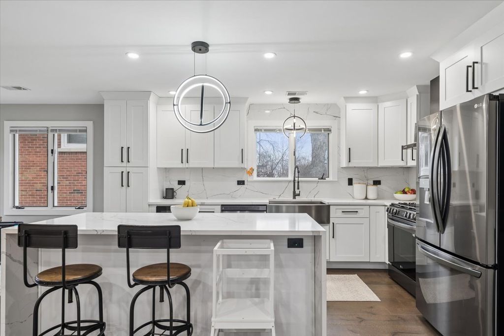 Modern luxury meets cozy home experience - beautifully renovated 4-bed, 3 and a half-bath split-level home in desirable Riverside, fully gut-rehabbed in 2023 with high-end finishes throughout. This home features an open-concept living, dining, kitchen great room with a statement stone decorative fireplace. Off the main living space is a window filled sunroom perfect for an office or playroom and a convenient powder room. The finished lower level offers a large family room, additional bedroom, and full bath-perfect for guests or flexible living. Large storage closets + laundry room make this space equally functional. Upstairs a primary suite plus 2 additional bedrooms round out this move in ready property. Situated on a generous lot with a newly fenced yard, patio, and attached 2.5-car garage. Conveniently located near parks, schools and the beautiful winding streets of Riverside.