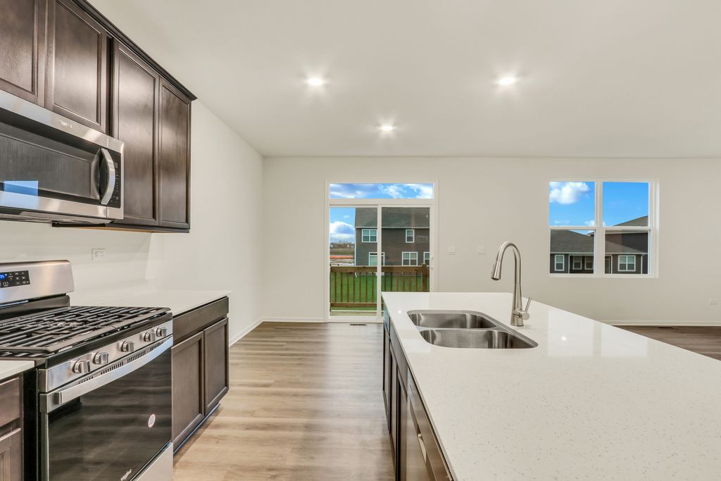 Discover yourself at 14849 S Parkview Drive, a beautiful new home in our Greenbriar community. This home will be move-in ready for end of summer! The Henley plan offers 2,600 square feet of living space with a flex room, 4 bedrooms, 2.5 baths, 9 -foot ceilings on first floor, and full basement. As you step through the front door, you'll find a private study-perfect for working from home or setting up a quiet reading nook. From there, the foyer opens to a spacious great room that flows into the casual dining area and modern kitchen, creating a seamless living space ideal for both entertaining and everyday life. The main level living area offers solid surface flooring throughout for easy maintenance. Entertaining will be easy in this open-concept kitchen and family room layout with a large island with an overhang for stools, 42-inch designer cabinetry with crown molding and soft close drawers. Additionally, the kitchen features a walk-in pantry, modern stainless-steel appliances, quartz countertops, and easy-to-maintain luxury vinyl plank flooring. More flexible space is waiting upstairs in the 2nd-floor loft, offering unlimited potential to suit your needs. Enjoy your private getaway with your large primary bedroom and en suite bathroom with a raised height dual sink, quartz top vanity, and walk -in shower with ceramic tiled walls and clear glass shower doors. Convenient walk-in laundry room, 3 additional bedrooms with a full second bath and a linen closet complete the second floor. All D.R. Horton homes include designer inspired interior packages and come with the America's Smart Home Technology, featuring a smart video doorbell, smart Honeywell thermostat, smart door lock, Deako smart light switches and more; allowing you to control and monitor your home from your couch or from 500 miles away. Photos are representative of plan only and may vary as built.