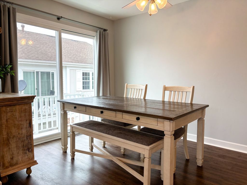 This beautifully renovated 2 bedroom, 2nd floor unit, is the ultimate home where comfort meets luxury. Nestled in the corner of the community, this end unit offers over 1000 square feet of living space, along with outdoor balcony access. The home has rare, extra deep garage storage with direct entryway access, making it ideal for homeowners. Major improvements were completed in 2021. The entire home was given new windows, sliding balcony door, new furnace, and insulation in the attic, giving homeowners the peace of mind they are craving. The closed door laundry room features brand new tile flooring with wall mount shelving, to ensure daily chores are not only pleasurable, but convenient. In 2024, the kitchen underwent a complete remodel including modern quartz countertops, tile backsplash, as well as new high end stainless steel appliances. Additional upgrades include new cabinet door fronts, updated chantilly lace cabinetry paint, under the sink reverse osmosis water filtration system, and a kraus work station sink. Truly turn key, with comfort living in mind. The bathroom features updated dual sink quartz vanity, and new hardware throughout. The flooring is 100% waterproof luxury vinyl, ideal for everyday living. This home also offers ample storage with a walk in master closet, linen storage in bathroom, as well as a closed door pantry. With its thoughtful updates, and prime district 200 location, this home is nothing short of move in ready. Property taxes do not include homeowner tax exemption.Don't miss your chance, and come see it in person today!