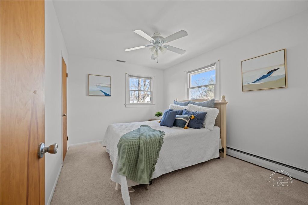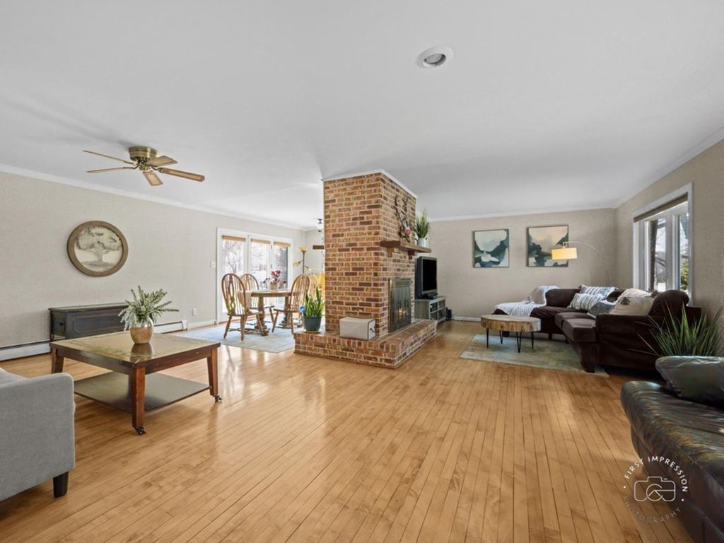 5-bedroom, 3.5-bath home on Geneva's desirable east side, featuring a sought-after main-level primary suite.The spacious primary bedroom offers a full bath and walk-in closet, delivering comfortable, convenient first-floor living. A two-sided fireplace creates a warm focal point between the main living areas, complemented by hardwood floors in the combined living and dining room. Upstairs, you'll find four additional bedrooms and a full bath-ideal for family, guests, or flexible work-from-home space.The partially finished basement includes a great playroom or rec area, along with ample storage and a dedicated laundry area. Step outside to a large, fenced backyard with a deck, patio, and paver fire pit-perfect for entertaining or relaxing under mature trees. The front yard is highlighted by a beautiful magnolia tree, adding charm and curb appeal. Complete with an attached two car garage, this home is a 3 minute car ride to downtown Geneva, a 7 minute walk to the local grade school, and close to countless amenities.