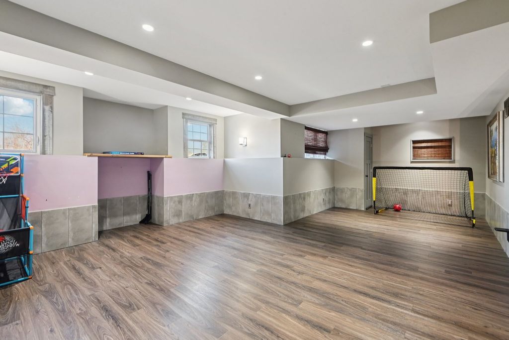 Beautifully maintained 5-bedroom home with 2 full baths, 2 half baths, and a 3-car garage, offering 3,110 sq ft above grade and 3,910 total sq ft including the finished basement. Located on a quiet circle in the desirable Village of Manhattan, known for its small-town charm, parks, community events, and convenient Metra access. The main level features a vaulted entry, formal dining room, and private office near the front entrance, ideal for working from home. The spacious living room with vaulted ceiling flows into the kitchen and eating area, perfect for everyday living and entertaining. A main-level bedroom and half bath offer flexibility for guests or related living. The kitchen includes ample cabinetry, a walk-in pantry, and backyard views. Enjoy the private outdoor space with a large deck, scenic natural tall grass, direct access to a walking path, and a nearby pond. The second floor offers four bedrooms, a full bath, and a primary suite with a walk-in closet and a private bath with a soaking tub and a separate shower. The finished basement features a theater room, a half bath, and a laundry area.