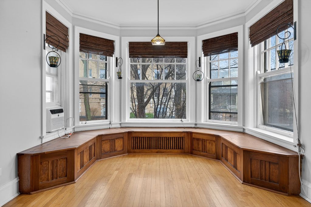 Spacious and charming 2 bed, 1 bath condo in the heart of Oak Park! This sun-filled home features hardwood floors throughout and a beautiful blend of vintage character and modern updates. The inviting living room showcases a decorative fireplace with built-in bookshelves and flows seamlessly into a bright sunroom with a cozy built-in bench. Enjoy a separate dining room ideal for entertaining and an updated kitchen (2022) with granite countertops, new cabinetry, subway tile backsplash, stainless steel appliances, and an oversized walk-in pantry. Both bedrooms are generously sized, and the updated bathroom includes a soaking tub. A versatile bonus room off the primary bedroom offers the perfect space for a home office or walk-in closet. Additional highlights include free laundry, a storage locker, and a shared courtyard. Unbeatable location just blocks to public transportation including Green Line, Blue Line, Oak Park Metra, Pace buses, and easy access to I-290. Close to all the shopping and dining along Madison Street. A perfect blend of space, style, and convenience!