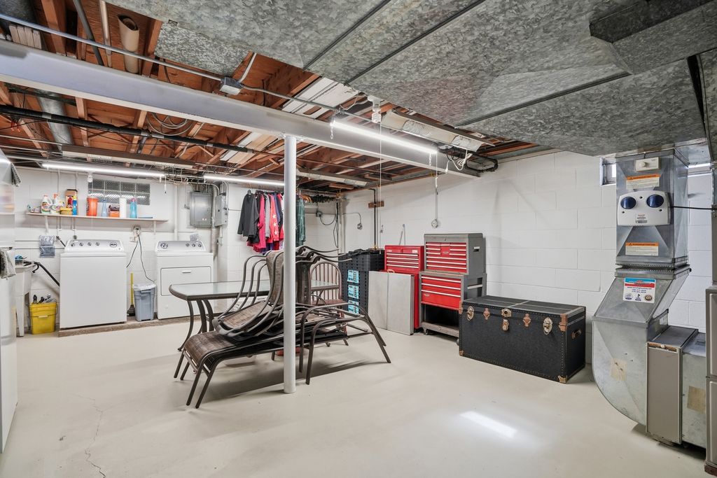 Welcome to this beautifully maintained 1.5-story home tucked away on a quiet street! Offering 5 spacious bedrooms and 3 full bathrooms, this home provides plenty of room to live, work, and entertain. The finished basement features a large great room plus a separate bonus space currently used as a fitness room-gym equipment can stay for the new owner if desired. You'll appreciate the abundant storage throughout, along with the pride of ownership that shines in every detail-this home has been meticulously cared for and is truly move-in ready. Major updates include newer appliances (approx. 4 years), roof (approx. 5 years), HVAC system (approx. 2 years), and windows (approx. 9 years), giving peace of mind for years to come. Step outside to enjoy a spacious, fully fenced backyard designed for both relaxation and entertaining, featuring a deck, paver brick patio, and an above-ground pool. A convenient shed provides dedicated storage for pool equipment and outdoor essentials. This home combines comfort, functionality, and value in a fantastic setting. Don't miss the opportunity to make it yours!