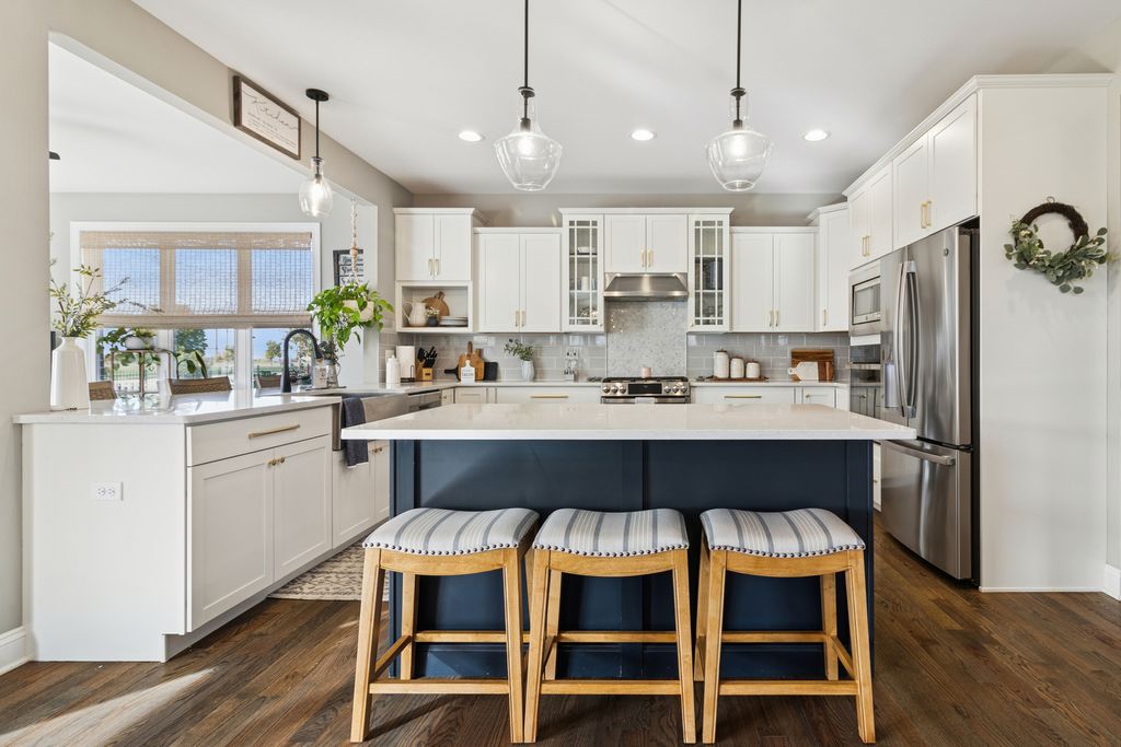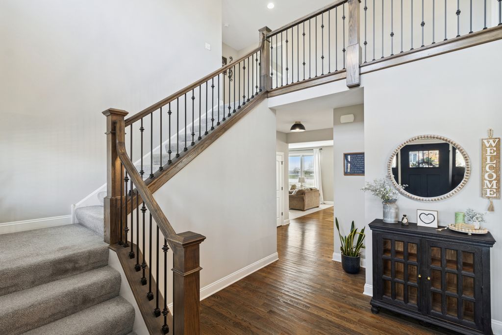 Stunning Home in Jacob's Field Built in 2021. Seller's built as their Dream Home with so many custom upgrades you will be sure to love. This Gorgeous 2 story home by (Flaherty Builders) features 4 Bedrooms, 3 Full Bathrooms (with one on the main level) a spectacular Sunroom was added to the original blueprint along with a massive main level laundry room, that could be converted to a home office if needed. Additionally, there is the convenience of a true Mud-room located just steps away from the completely insulated and drywalled 3-car garage entrance. This home also has a full basement with electric and roughed-in plumbing for a future 4th bathroom just waiting for your finishing touches. This open floor plan delivers gleaming hardwood floors throughout most of the main level. The Luxury Gourmet kitchen is outstanding with it's flawless designed cabinetry, carefully chosen Quartz counters with marble accented backsplash, huge quartz island for all your cooking and entertaining needs with a massive walk-in pantry and All stainless steel appliances. Everyone will appreciate the Huge adjoining family room with picturesque fireplace that has marble accents as well.. Just up the stairs you will find the pristine 2nd floor Primary bedroom retreat with custom trey ceilings and everyone's dream space of a 10x10 room for a walk-in closet. Luxurious Primary bathroom has a soaking tub and a seamless stand up shower with built in bench. All Bedrooms are generously sized and the shared Upstairs bathroom has a tub/shower combo and a double sink vanity. This Fantastic Home is a Showstopper!! Walking distance to Award Winning Schools, close to shopping, restaurants, commute etc...Don't Miss out, Schedule your Showing today by contacting the LA.