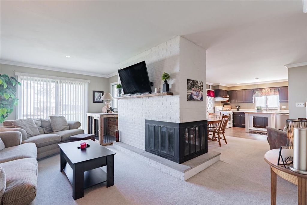 Immaculate 3-bedroom, 2.5-bath ranch situated on a spacious fenced corner lot! This well-maintained home features an open layout with a stunning see-through fireplace, perfectly positioned to be enjoyed from the kitchen, living room, and family room. The kitchen flows seamlessly into the main living areas, creating an ideal space for both everyday living and entertaining. Great laundry room with sink and storage. Step outside to a large deck that spans nearly the entire length of the home, offering great outdoor living space. A backyard shed adds even more convenience for storage. The oversized 2-car garage provides ample storage, along with additional side gravel parking-perfect for a boat or RV. Agent interest.