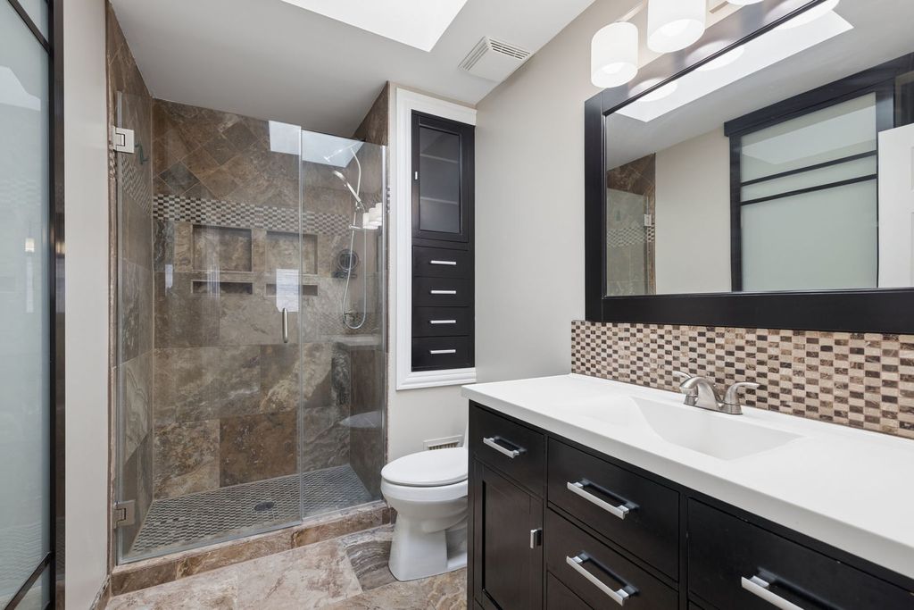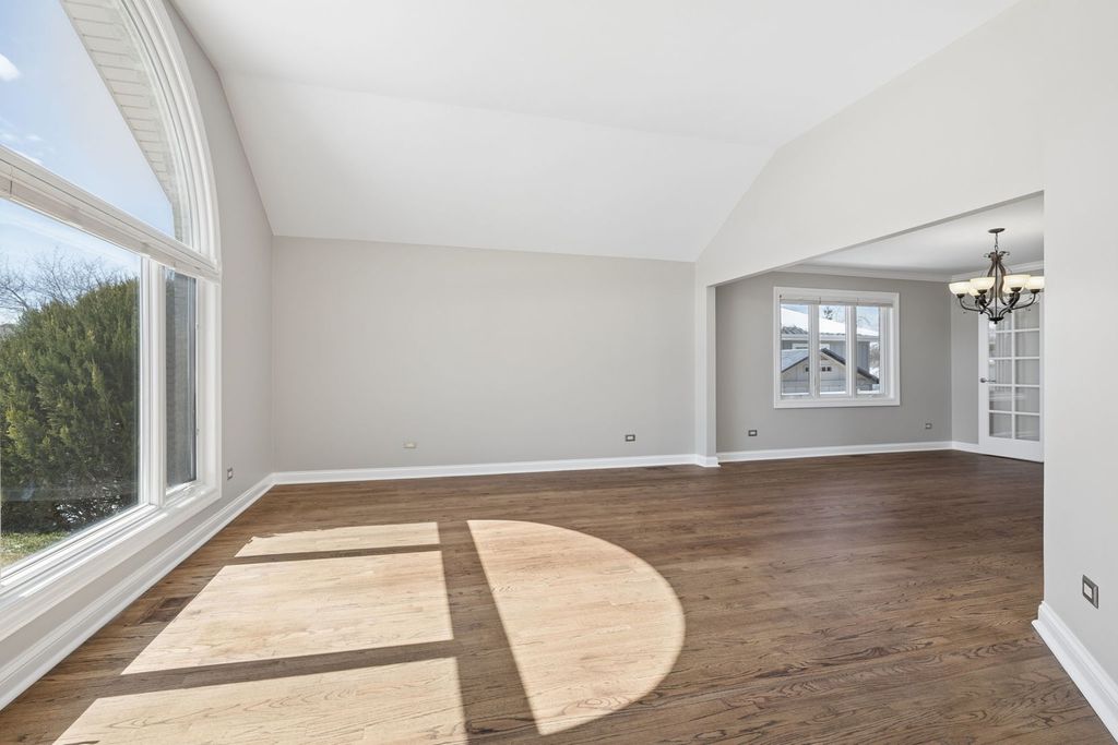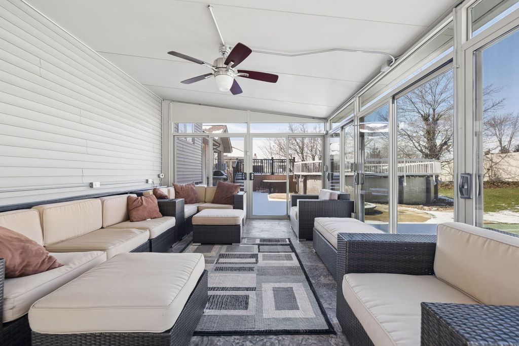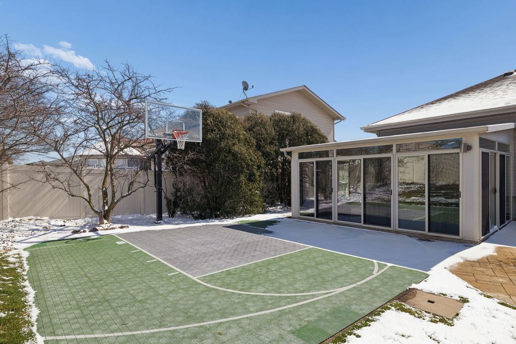 Well cared for and meticulously maintained, this 3+1 bedroom, 3 full bath step-ranch located in the desirable Abbey Glen offers the perfect blend of comfort, space, and functionality. The open and airy main level features hardwood floors throughout the living, dining, and kitchen areas, complemented by vaulted ceilings in both the living room and family room, creating a bright and inviting atmosphere. The spacious kitchen is ideal for both everyday living and entertaining, offering an eat-in area along with a breakfast peninsula for additional seating, ample cabinet space, granite countertops, and stainless steel appliances. You'll also find the convenience of main-level laundry and a thoughtfully placed half bath. Upstairs, the spacious primary suite includes a beautifully designed en suite bath and a custom-built closet with high-end organizers, providing ample storage. Two additional generously sized bedrooms and a second full bath complete the upper level. The finished basement is a standout feature, boasting impressive 12-foot ceilings, a large recreational area with a second fireplace, a full bar, a 3rd full bath, and a 4th bedroom-perfect for a guest suite, home office, workout space, or playroom. Car enthusiasts and hobbyists will love the heated 3-car garage, featuring an epoxy floor and complete with premium built-in storage lockers for ultimate storage and organization. Step outside to your own private backyard oasis-fully fenced and designed for both relaxation and entertainment. Enjoy the stamped concrete patio, cozy fire pit, heated above-ground pool with Trex deck, half-court basketball court, and a heated & cooled 4-seasons sunroom that allows you to take in the space year-round. Additional highlights include a whole-house generator. This home truly has it all-space, upgrades, and versatility-ready to fit a variety of lifestyles. Upgrades Include: Furnace (2026), Paint (2026), Refinished Hardwood (2026), AC (2025), Dishwasher (2025), W/D (2020), Kitchen Appliances (2020), Trex Pool-Deck (2020), Pool (2020).