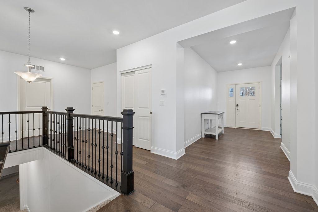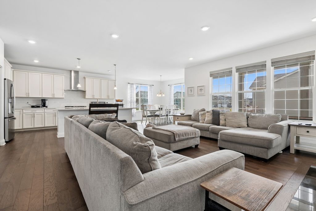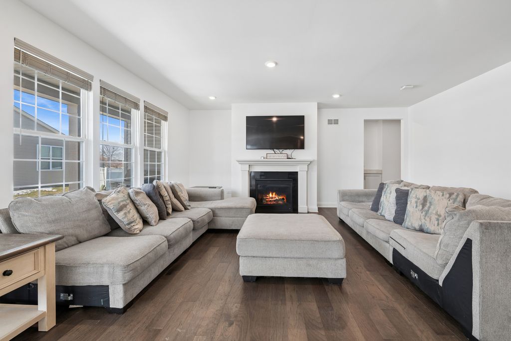 Beautiful 3-bedroom, 2-bath ranch located on a desirable corner lot in a quiet cul-de-sac. This home features a spacious open-concept layout with abundant natural light, seamlessly connecting the kitchen, dining, and living areas-perfect for everyday living and entertaining. The upgraded kitchen boasts quartz countertops, stainless steel appliances, double oven. Dark wood flooring adds warmth and style throughout the main living space, complemented by a cozy gas fireplace and custom window treatments. Primary bedroom conveniently located on the main level. Two additional bedrooms feature new gray plank flooring, and stairs are finished with new carpet. Basement is roughed-in for a full bathroom, offering great potential for future expansion. Move-in ready with thoughtful updates throughout-don't miss this opportunity!