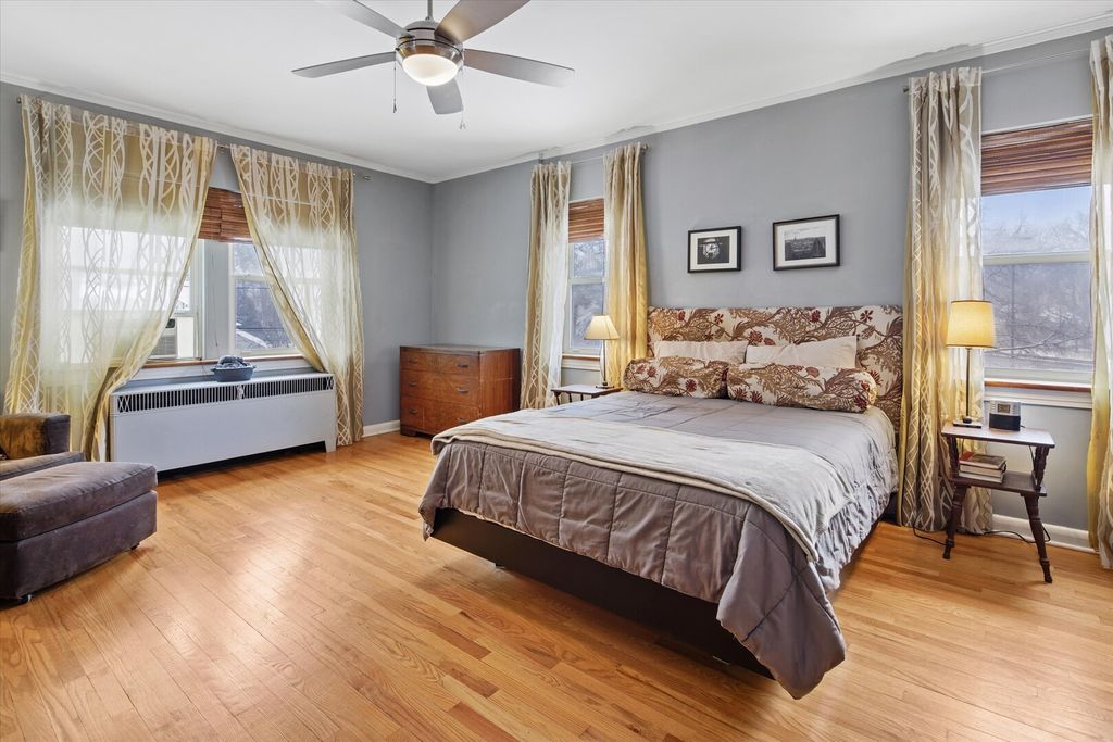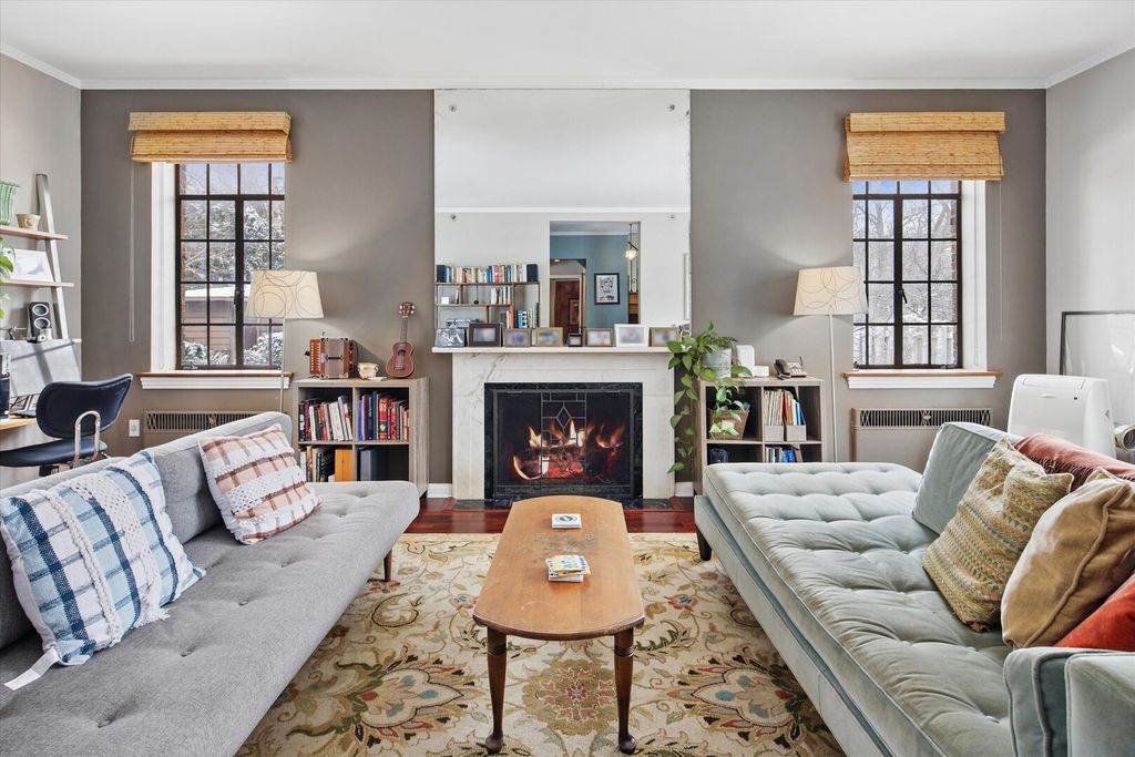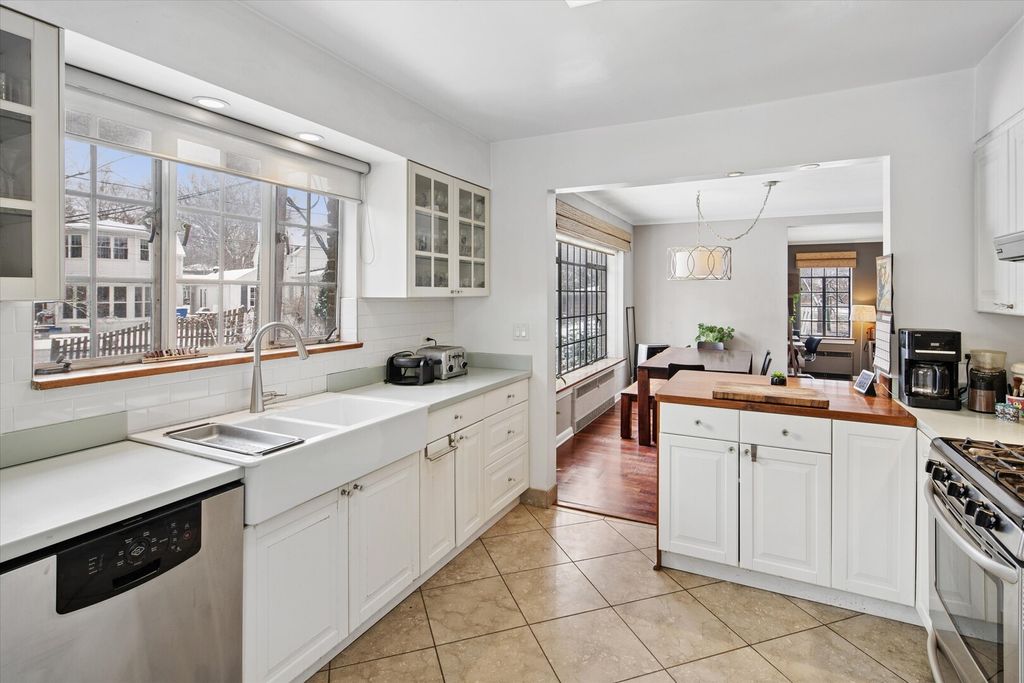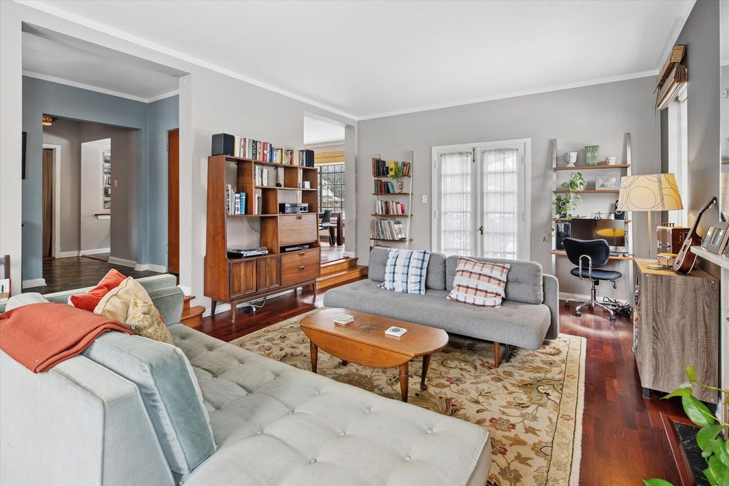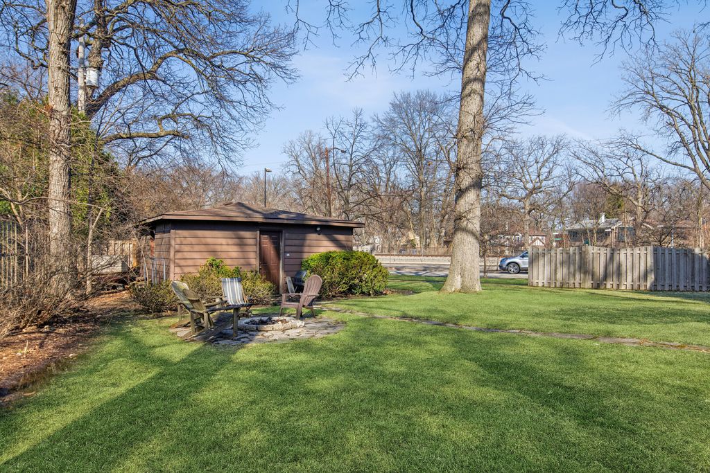 Welcome to Wildwood - a stately English Tudor with timeless character and exceptional curb appeal on an oversized corner lot (over 8,000 sq ft). Beautifully sited with multiple outdoor living areas, this home is perfect for spring and summer entertaining. Enter through the center foyer into a thoughtful split floorplan with excellent flow. The sunken living room is bright and inviting, featuring Brazilian cherry floors and a centrally located gas fireplace, plus space for large furniture and a potential office nook. French doors open to a private patio overlooking the rear yard. The open dining/kitchen area easily accommodates an extendable table and buffet; the kitchen offers a custom peninsula island with built-in storage. The main level is completed by a large updated powder room and a cozy family room with wood-beam walls-ideal for reading, relaxing, or family movie nights. Upstairs are three generously sized bedrooms and a recently remodeled full bath with custom tile, a deep tub/shower combo, new vanity, vaulted ceilings, and an attached in-bathroom closet for added convenience. The large, high-ceiling unfinished basement offers flexible space ready for your design ideas, with lower-level laundry and a walkout to the rear yard. Outside, a spacious patio adjacent to the kitchen provides a natural extension for dining and grilling. The park-like yard is planted with mature greenery and offers a lovely setting for a firepit and seating area. Located in the coveted Edgebrook "Wildwood" neighborhood and Wildwood School District-just steps from downtown Edgebrook's shops, restaurants, library, and Metra-this home blends classic charm with modern livability. Don't miss the opportunity to make it yours.