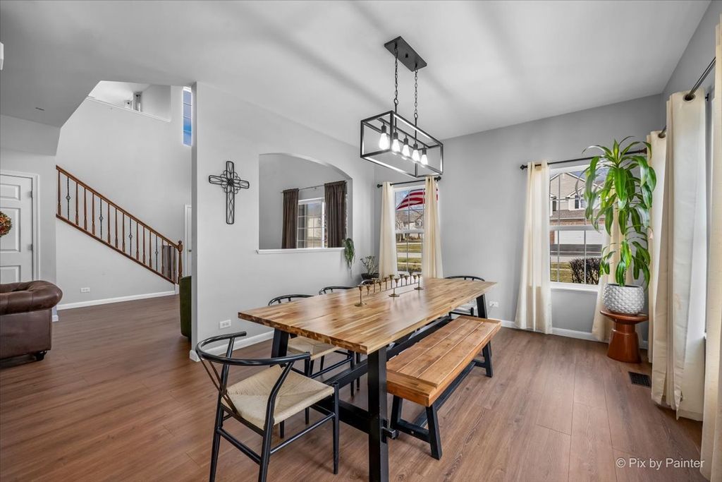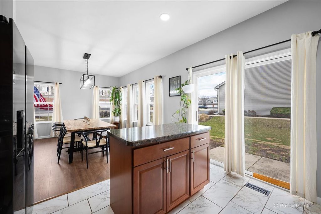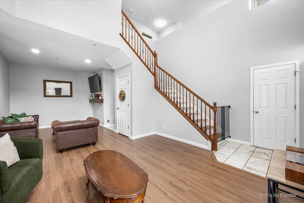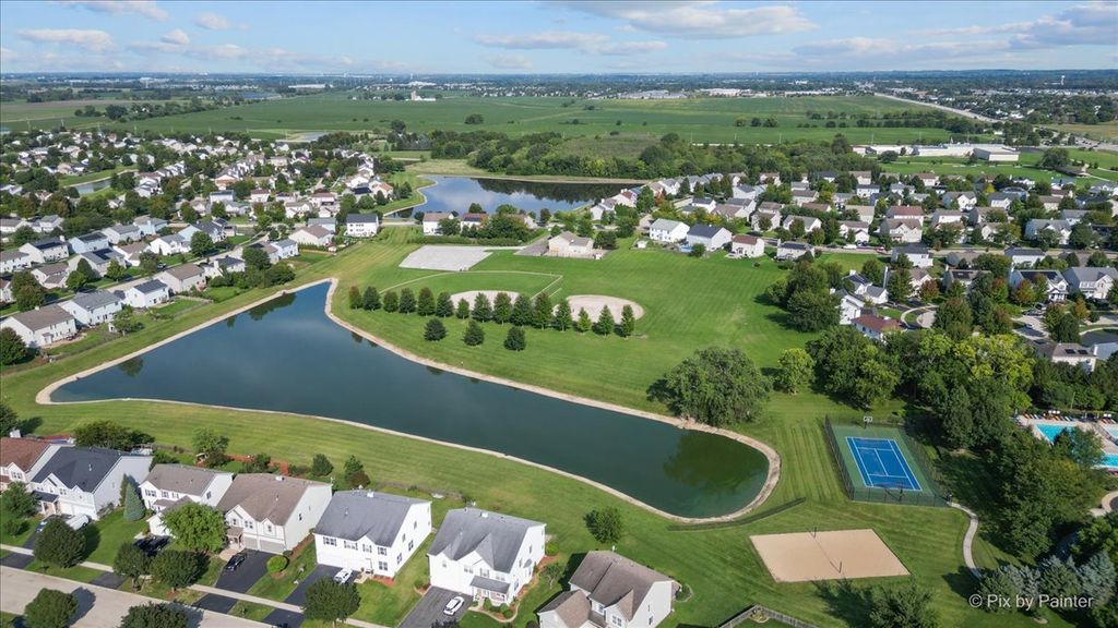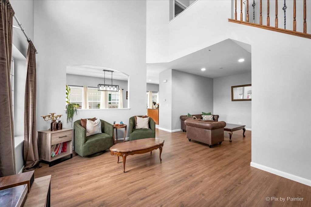 HURRY-THIS RARE GEM WON'T LAST! Experience the ultimate in low-maintenance living with this premium, rarely available END UNIT townhome in the highly sought-after Lakewood Springs pool and clubhouse community! From the moment you step inside, you'll be impressed away by the sunny OPEN CONCEPT featuring a gourmet kitchen complete with upgraded cabinetry, a center island, stainless steel appliances, and a custom backsplash - all flowing into a huge dining area with hard-surface wood laminate flooring. The expansive living and family rooms are drenched in natural light, boasting soaring volume ceilings for a truly airy feel. Updated 1st Floor guest bathroom. Upstairs you'll find hard-surface flooring throughout. The Primary Suite features a private full bath and a huge walk-in closet ~ A spacious second bedroom with a double wide closet and a FLEXIBLE LOFT that can easily be converted into a third bedroom or perfect use for a home office, gym, craft room or playroom! Convenient 2nd Floor Laundry room ~ Attached 2 car Garage + Driveway for added parking. Enjoy your private patio and tons of green space. HOA handles all exterior maintenance, lawn care, and snow removal. Lakewood Springs residents enjoy multiple pools, parks, walking paths, lakes, sports courts, volleyball and tennis courts + easy access to shopping, dining, and major commuter routes. Plus an nearby elementary! A wonderful place to call home!