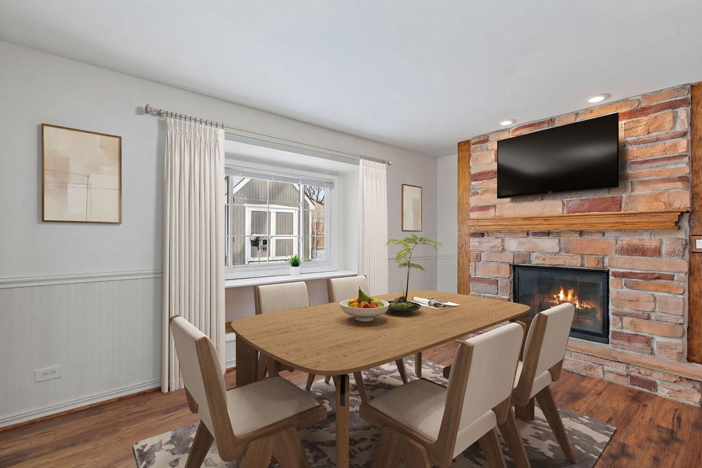 Charming 3-bedroom ranch in desirable Streamwood Woodland Heights that offers surprisingly expansive living space far beyond what meets the eye, with a layout designed for both comfortable everyday living and effortless entertaining. Step into a spacious, light-filled living room highlighted by a skylight, creating a warm and inviting atmosphere that flows effortlessly into a large eat-in kitchen featuring Corian countertops, tile backsplash, a peninsula breakfast bar, and a pantry closet-perfect for everyday living and hosting. The dining room, which can easily double as an additional living space, showcases a stunning stone gas fireplace and sliding glass doors that open to the outdoor patio, extending your entertaining options. A flexible bonus room off the kitchen adds even more square footage and functionality-ideal as a family room, office, or playroom-with the option to convert back to a garage if desired. Enjoy the convenience of main-level laundry with a service door to the yard. The primary bedroom offers ample closet space and a private en-suite half bath, while two additional bedrooms share a full hall bath with double sinks and a linen closet. Outside, relax or entertain on the patio overlooking a fully fenced yard with a storage shed. NEW furnace, microwave, and washer in 2025, water heater (2020), and stove (2022). All of this in a prime location near Veterans Park, Ridge Circle Elementary School, shopping, dining, and more-making this home as convenient as it is spacious.