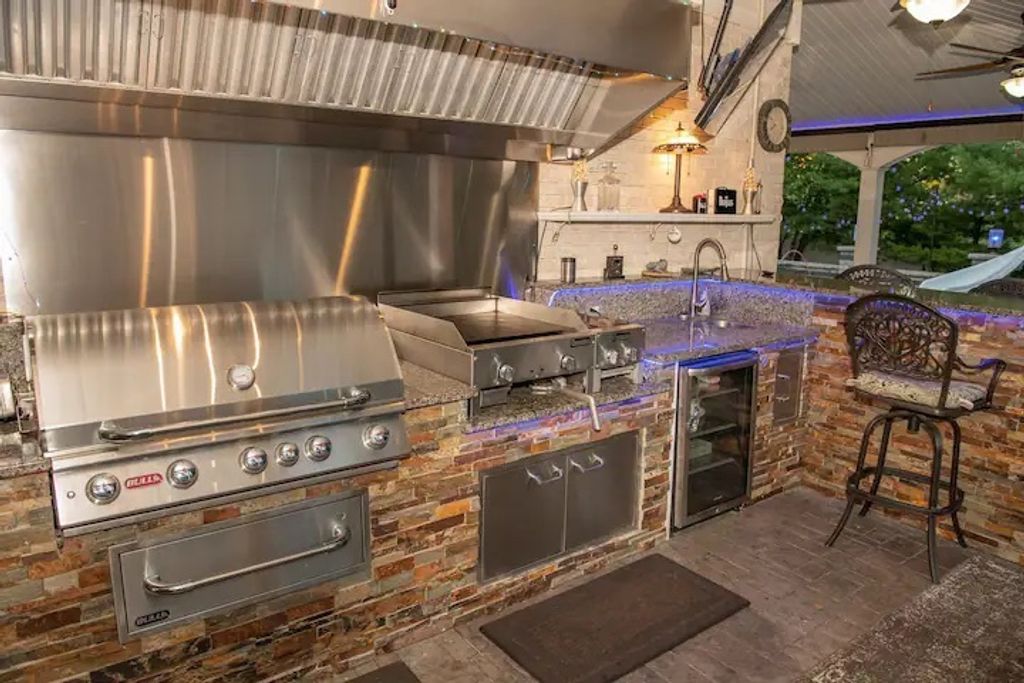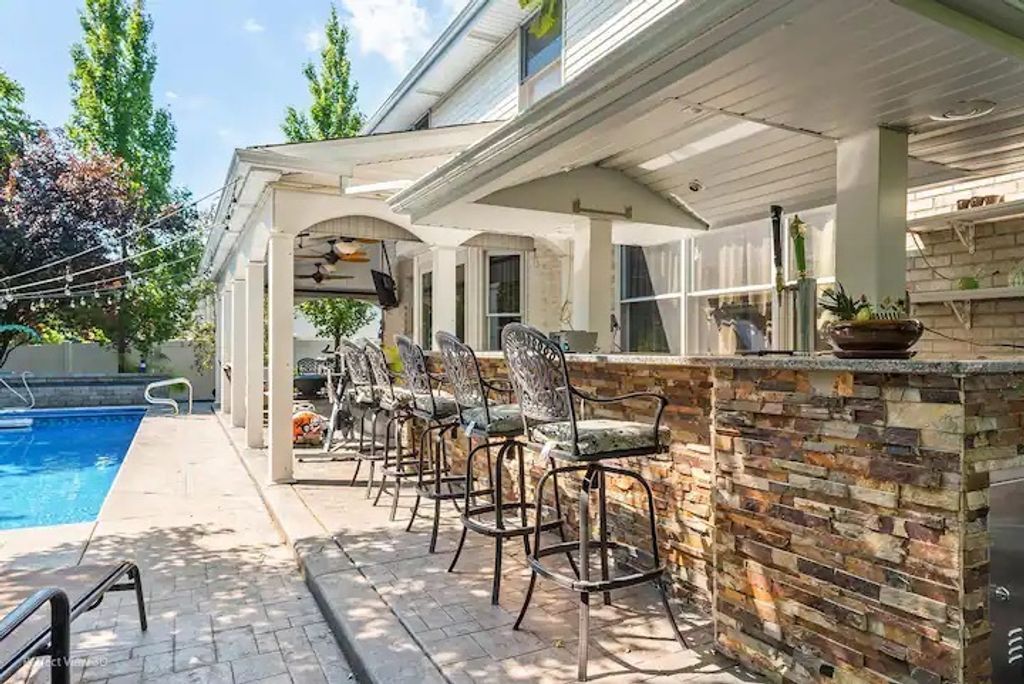 Welcome to this cheerful, meticulously maintained 3-bedroom, 2.5-bath home, designed for the way people live today. The flexible layout includes a versatile loft, easily convertible into a 4th bedroom, alongside a main-level space ideal for a home office, workout room, or playroom. The open-concept design seamlessly connects the kitchen and family room, promoting easy interaction whether you're cooking, hosting, or simply relaxing. The true showstopper is the resort-like backyard, offering year-round enjoyment. This private oasis features a heated, in-ground pool with vibrant LED lighting and a new automatic cover. The outdoor entertaining area is a true oasis, featuring a stamped concrete patio, all enclosed by a decorative brick paver wall. Highlights include a luxurious 16-foot ROOFED TIKI WET BAR, complete with a stone wall, granite top, ice maker, keg-erator, freezer, and storage drawers with sliders. The expansive cooking area boasts an 8-foot SEATED GRANITE top and stone wall for dining, a built-in OUTDOOR GRILL, a FLAT IRON GRILL, a DUAL BURNER STOVE, a sink, commercial-grade exhaust fan, all supplied with 3 gas line hookups. Additional amenities include two warming drawers, a full-size refrigerator, two outdoor mounted TVs, and four outdoor ceiling fans. For relaxation, the space offers a three-foot round blue glass gas fire pit and a hot tub. GARAGE equipped with commercial rubber matt flooring, tons of cabinetry and shelving unit! Located conveniently close to parks, schools, shopping, and dining, this home offers the perfect blend of everyday comfort and a fun, lifestyle-driven setup.