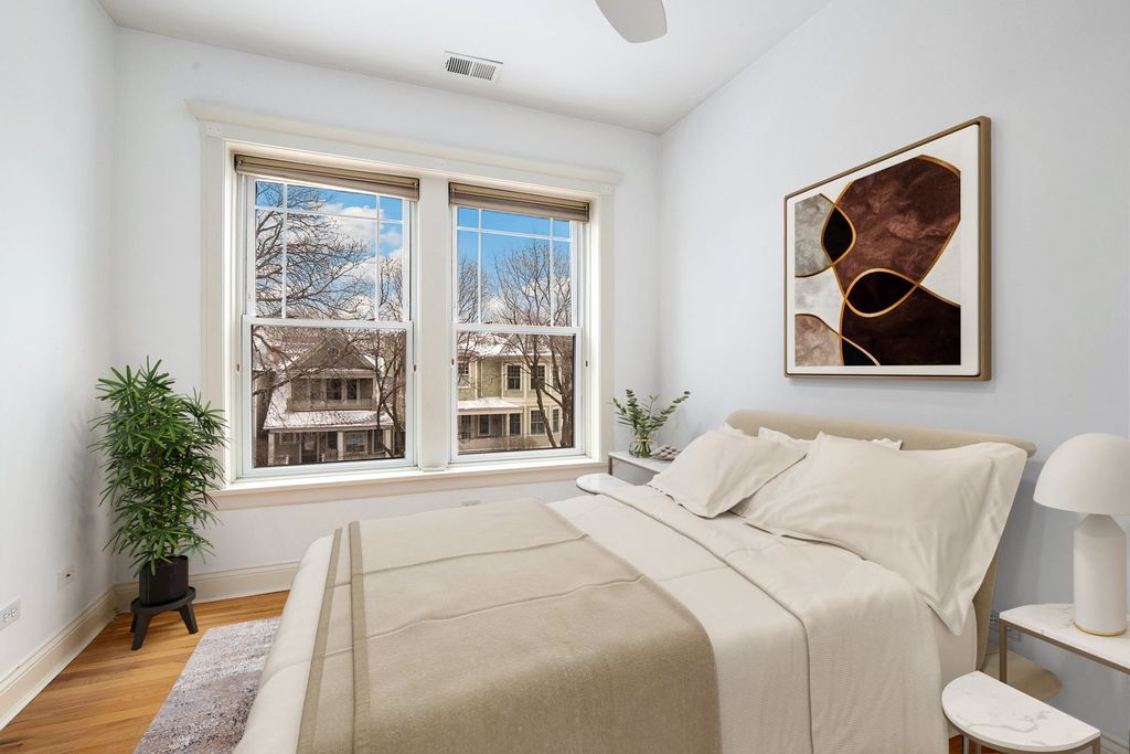 Bright and spacious 3-bedroom, 2.5-bath home situated on a beautiful tree-lined street in the heart of Graceland West. This corner, extra-wide unit features a desirable split floor plan and is filled with natural light throughout. Highlights include a chef's kitchen, updated bathrooms including the recently remodeled primary bath, hardwood floors throughout, crown molding, a separate dining area, and a generous living space with a gas fireplace. The private deck off the dining room is perfect for entertaining, complemented by an additional shared rear deck. Additional features include an in-unit washer and dryer, large closets, surround sound wiring, extra storage, and one garage parking space included in the price. Exceptional location with easy access to transportation, parks, shops, grocery stores, restaurants, the Southport Corridor, and more. Not to miss!