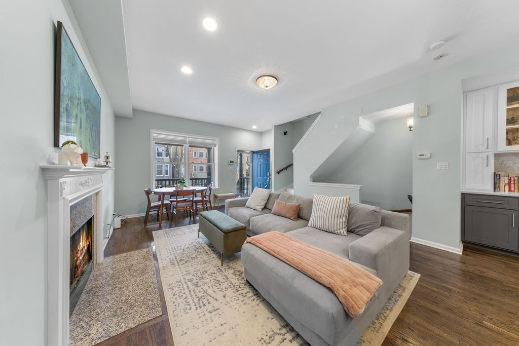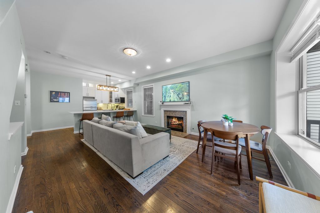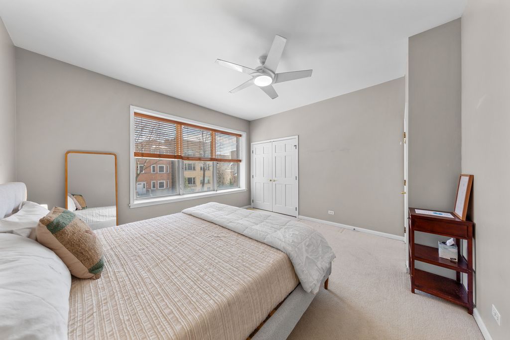 Heart of Southport Corridor three level condo that lives like a townhome! This spacious residence on a tree-lined one way street contains numerous updates & boasts two separate living spaces. The charming front porch offers a private entrance into the bright, spacious main living level. The stainless, white kitchen with quartz countertops offers plenty of cabinet space, attractive lit upper cupboards and a massive counter that comfortably fits four stools. Adjacent to the kitchen is a wonderful coffee bar with additional cabinets, quartz countertop, storage and a beverage refrigerator. The living/dining space is anchored with a fireplace and beautifully refinished oak floors. Upstairs are two generously sized bedrooms and large bath with soaking tub and sizable vanity. The lower level is a delight which provides another generously sized living space which functions great as a recreation room, exercise space or guest quarters with a full, updated bathroom attached. Under the stairs offers a functional workstation with a built-in desk perfect for work from home. Finishing off the lower level is a fantastic utility room which offers side by side laundry, more cabinet space and generous storage capacity. A garage space completes this charming home just steps from Blaine School. Countless shops, restaurants, the Brown Line, Wrigley Field and all that the Southport Corridor offers are all just a stones throw away. Welcome home to Lakeview living at its finest!