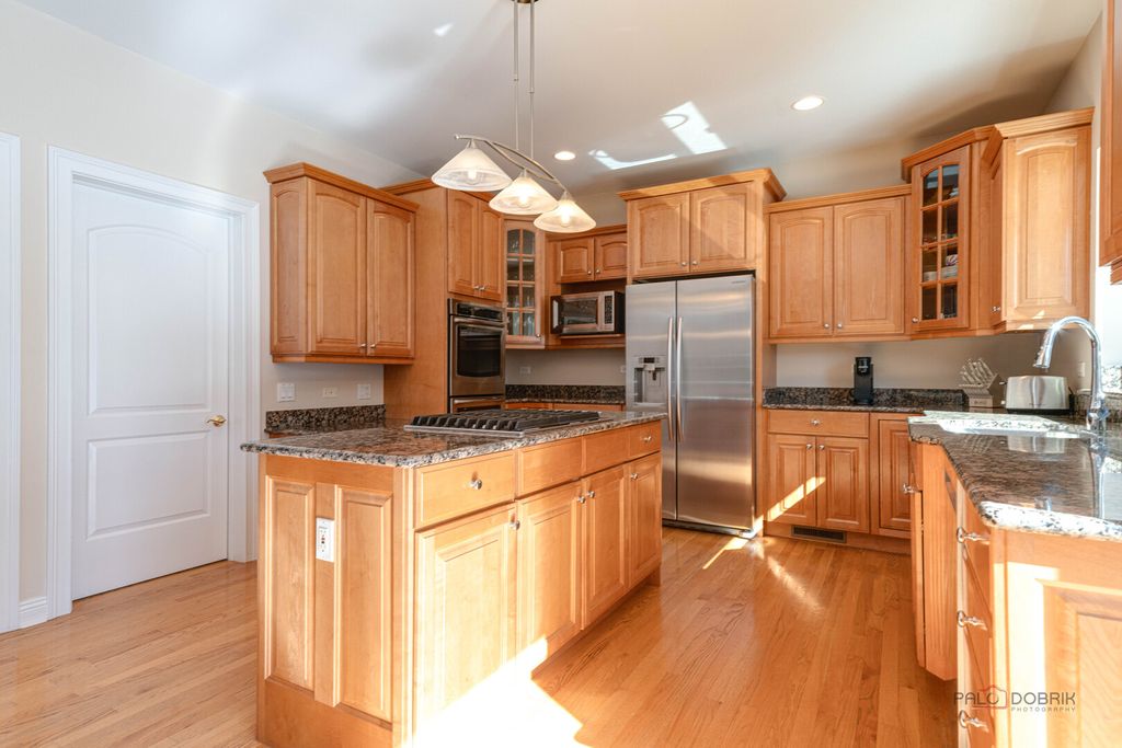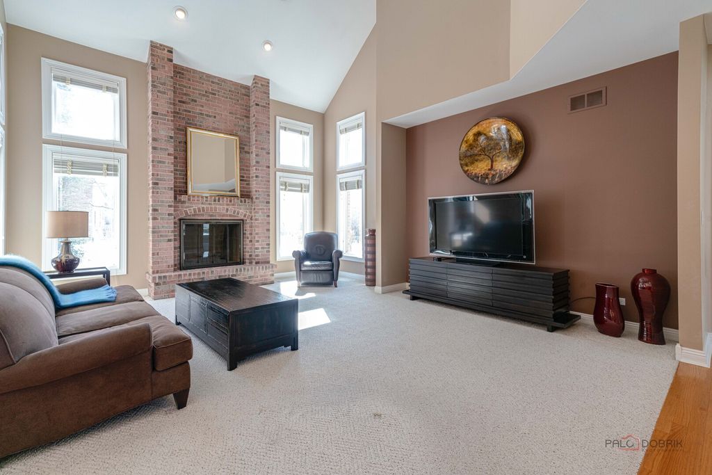 HIGHLY SOUGHT-AFTER GREGG'S LANDING | 4 BEDROOMS + 1ST FLOOR OFFICE | FULL BASEMENT WITH WET BAR | 3-CAR GARAGE | TOP-RATED SCHOOLS! Perfectly positioned in Gregg's Landing, this stately brick and stucco 4-bedroom, 4.1-bath home blends timeless architecture with thoughtful updates, including a NEW roof (2023) and stucco siding (2020). An inviting 2-story foyer welcomes you in, flanked by a formal living room and separate dining room with a trayed ceiling, setting the stage for everything from holiday dinners to intimate gatherings. Just beyond, the eat-in kitchen draws everyone together with granite countertops, 42" custom cabinetry with crowned uppers, and stainless steel appliances including a Samsung refrigerator (2014), Maytag double oven (2014), KitchenAid dishwasher (2014), and Whirlpool cooktop. An oversized island anchors the space, perfect for morning coffee, casual meals, or unwinding in the sunlit breakfast area. Sliding doors open to a brick paver patio framed by a lush tree line, creating a private setting for summer barbecues, outdoor dining, or a peaceful evening to unwind. The two-story family room invites you to relax and unwind, accented by a floor-to-ceiling brick fireplace that adds warmth and character. A main-level office provides a dedicated work-from-home space, while the half bath and laundry/mudroom with Maytag washer and dryer (2020) add everyday functionality right where you need it. Upstairs, the primary suite offers a peaceful retreat with a tray ceiling, generous and a spa-inspired bath featuring a whirlpool tub, dual vanities, a separate shower and access to the large walk-in-closet. A private en-suite bedroom, along with two additional bedrooms with private access to the shared bath, creates flexible space for family, guests, or changing needs over time. The finished basement with wet bar extends your living space even further, ready for movie nights, game days, or hosting friends, complete with a full bath and additional flex space for a home gym, playroom, or lounge. Plenty of storage keeps everything organized and out of sight. A sought-after 3-car attached garage and an exceptional location in Gregg's Landing, close to parks, golf, shopping, dining, and award-winning schools, complete the picture.
