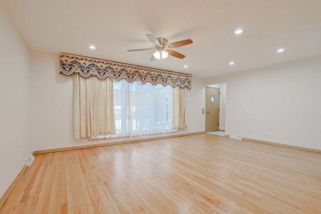 Stunning Brick Raised Ranch Modern Updates & Prime Location. Welcome to this beautifully updated all brick raised ranch, offering a perfect blend of classic charm and modern luxury. This spacious 3+1 bedroom, 2-bathroom home is move-in ready and situated in a quiet, sought-after neighborhood. Main Level Highlights Modern Kitchen: Completely updated with brand-new flooring, sleek white cabinetry, and elegant granite countertops. New Appliances: Fully equipped with new stainless steel kitchen appliances, including a side-by-side refrigerator, freestanding gas oven, and dishwasher. Refined Living Space: Features a large living room combined with an L-shaped dining room, perfect for entertaining. Hardwood Flooring: Freshly refinished hardwood floors run throughout all bedrooms, the living room, and the dining room. Freshly Painted: The entire home has been updated with a fresh, contemporary paint palette. Expansive Finished Basement High Ceilings: Rare 92-inch ceiling height creates an airy, open feel. Premium Finishes: Stunning 24 x 48-inch porcelain tile flooring and fresh paint throughout. Natural Light: Plenty of windows and a convenient outside exit door. Outdoor Space & Parking Garage: Attached 2-car garage for easy access, storage and a provision for EV charging. Backyard Oasis: Enjoy a quiet evening on the concrete patio overlooking a beautifully maintained backyard. Unbeatable Location Commuter Friendly: Less than 8 miles from O'Hare International Airport. Schools: Located very close to Devonshire Elementary School, Friendship Middle School and Elk Grove High school. Convenience: Minutes away from a wide variety of shopping and dining options. Sold As-Is