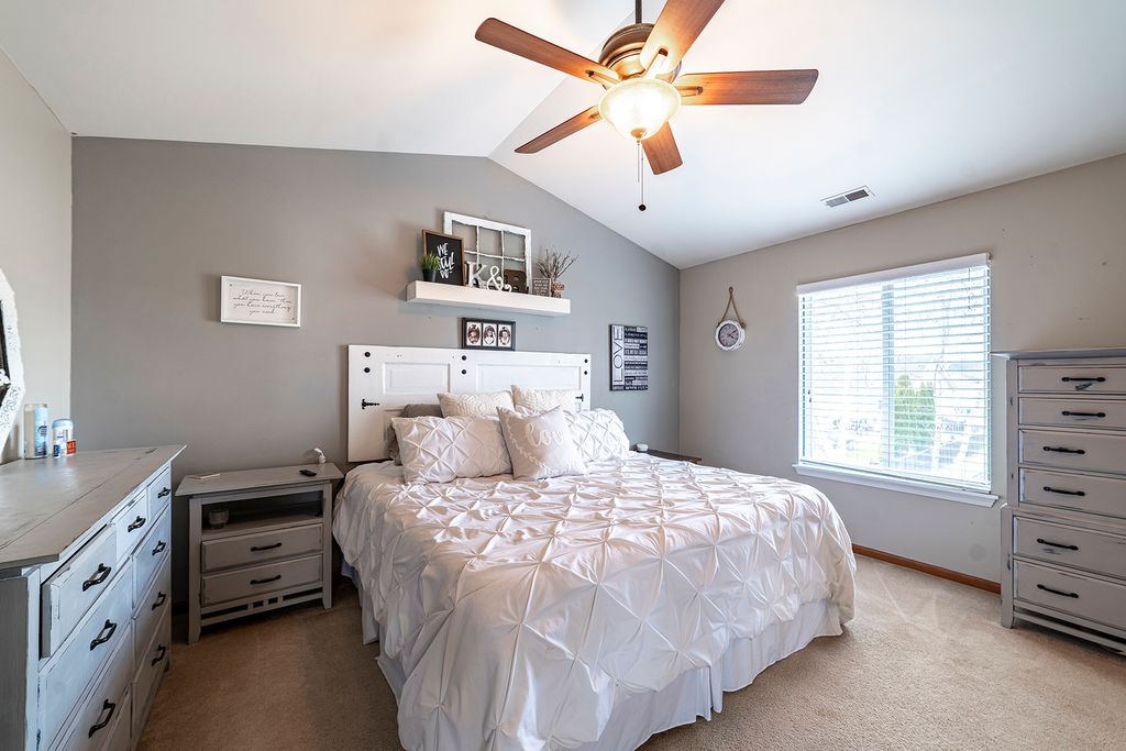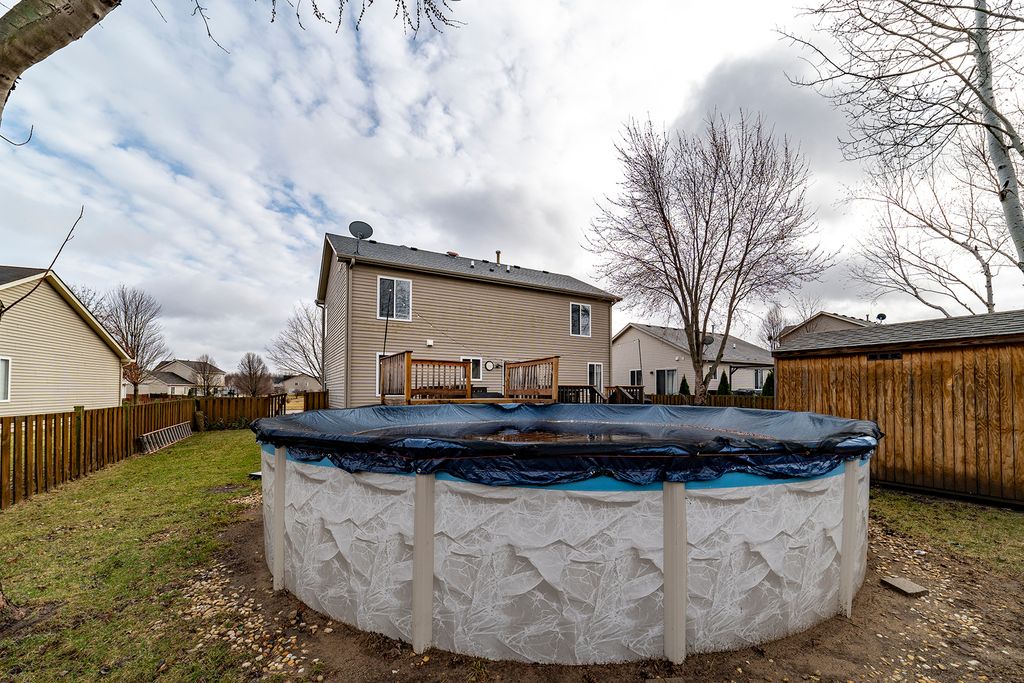 OFFER VERBALLY ACCEPTED. JUST WAITING FOR THE PAPERWORK. Welcome home to this inviting two-story property with thoughtful updates throughout! You'll love the bright eat-in kitchen, complete with granite countertops, hardwood flooring, and all kitchen appliances included, making it truly move-in ready. The main living areas include a formal dining room, comfortable living room, and a family room with brand new carpet. This home features 3 bedrooms on the main level, plus 2 additional bedrooms in the partially-finished basement, and 2.5 bathrooms. Step outside to enjoy a fully-fenced backyard featuring a deck with patio, an above-ground pool, garden beds that stay, and a storage shed, perfect for outdoor enjoyment all season long.Roof, gutters, and hot water heater new in 2019. Subject to sellers closing on a home they have under contract. Located in a neighborhood with access to playgrounds, a clubhouse, pool, and tennis courts, as well as a school conveniently-located within the subdivision, this home has so much to offer! Sellers will consider offers beginning Tuesday 3/24 at 5pm. Call today to see if this is the home you've been dreaming of.