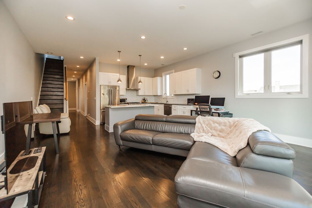 Stunning Top-Floor Penthouse in the Heart of Booming Pilsen! Welcome to your dream home in one of Chicago's most vibrant neighborhoods! This bright and elegant 3 bed, 2 bath penthouse spans 1,500 sqft and features an interior staircase to a private rooftop deck with breathtaking 360 views-including sweeping panoramas of the iconic Chicago skyline. Enjoy luxury city living with an open-concept layout showcasing a spacious living room and a chef-inspired kitchen with a large island and professional-grade stainless steel appliances. The primary suite boasts a generous walk-in closet and a spa-like bath complete with an oversized walk-in shower, dual vanity, and porcelain tile finishes. Additional highlights include:Expansive rear deck for grilling and entertaining;10-foot ceilings and 7' solid-core doors throughout;Rich hardwood floors;In-unit laundry;Garage parking included. Unbeatable location-just minutes to downtown, public transit, acclaimed restaurants, and all that Pilsen has to offer. This is city living at its finest! Don't miss your opportunity to own a skyline view!