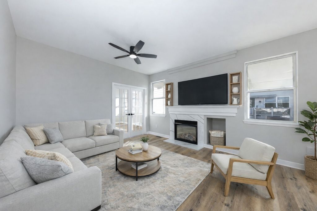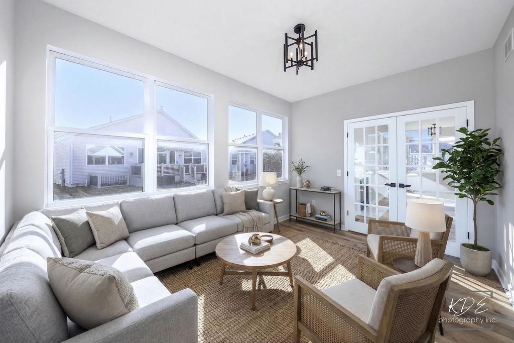 Stunning Fully Remodeled Ranch in Desirable Grand Haven 55+ Community! Welcome to this beautifully updated ranch home offering the perfect blend of comfort, style, and low-maintenance living. This move-in-ready residence features 2 spacious bedrooms, 2 full bathrooms, a bright living room, formal dining area, inviting family room, bright sunroom, and a full basement with abundant storage. Step inside to a light-filled open layout showcasing new wide plank luxury flooring, fresh paint, custom trim work, and modern lighting throughout. The gourmet kitchen is a true showstopper, complete with crisp new white cabinetry, quartz countertops and backsplash, under and above cabinet lighting, a large center island, and all new stainless steel appliances. The kitchen flows seamlessly into the family room and separate sunroom-perfect for everyday living and entertaining. The private primary suite offers a walk-in closet with custom organizers, plush new carpeting, and a beautifully updated en-suite bath. A second bedroom and fully remodeled hall bathroom provide comfort and flexibility for guests. Additional highlights include an inviting covered back patio, two-car garage with brand-new epoxy flooring and a full basement ready for storage, hobbies, or future finishing. Enjoy resort-style living in the highly sought-after Grand Haven community, featuring gated security, a spectacular clubhouse, indoor and outdoor pools, fitness center, tennis and basketball courts, bocce ball, and a vibrant social scene with clubs and activities. The clubhouse also offers a library, computer lab, card room, art studios, and an elegant ballroom. Scenic walking paths wind throughout the community, creating a peaceful and picturesque setting. Simply unpack and start enjoying everything this exceptional home and community have to offer-Welcome Home!