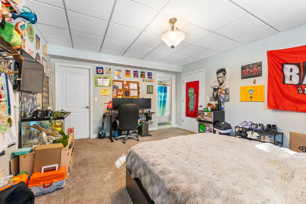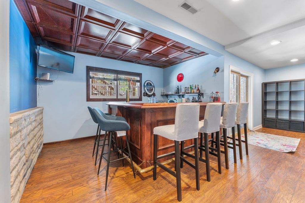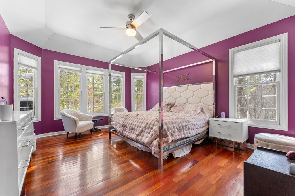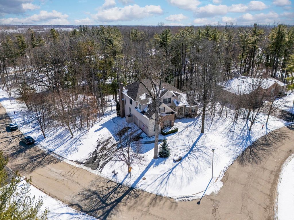 Welcome to this beautiful and spacious home features 6 bedrooms, 4.1 bathrooms, and a 3-car garage. The home offers a stunning two-story family room with a fireplace, a first-floor master en-suite, plus a parlor, formal dining room, and den. The gourmet kitchen includes custom cherry cabinets, granite countertops, a large island, and a breakfast bar, along with a bright eating area and cherry wood floors throughout. The walk-out lower level is perfect for entertaining or extended living, featuring a large rec room, family room, workout room, in-law suite, and a custom wet bar to enjoy movie nights in the home theater with a 120" screen, brand-new Epson projector, Marantz tuner, and Dolby Atmos sound system with 10 in-ceiling speakers. Step outside to a tranquil setting surrounded with a private pond, with decks, patios, and a private outdoor fire pit. A perfect space for gatherings and to have a great time. Home also features a heated garage & whole home humidifier. 3,971 sq ft above grade and another 1000 sq ft below grade! Recent Upgrades 2025: Samsung Bespoke refrigerator with screen & Whirlpool front-load washer/dryer & ejector pump. 2023: New smart garage doors 2022: Complete tear-off and replacement of roof 2021:Wine fridge also included : Two new zoned furnaces, two new A/C units with new coils This gorgeous, move-in-ready home offers luxury, space, and modern upgrades in a peaceful setting. A must-see!