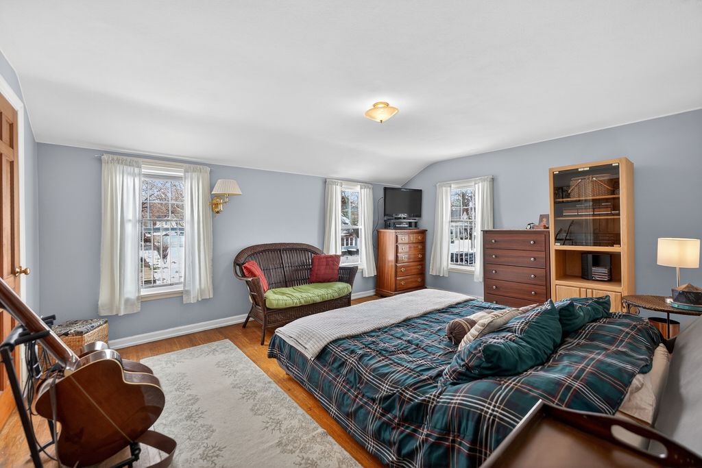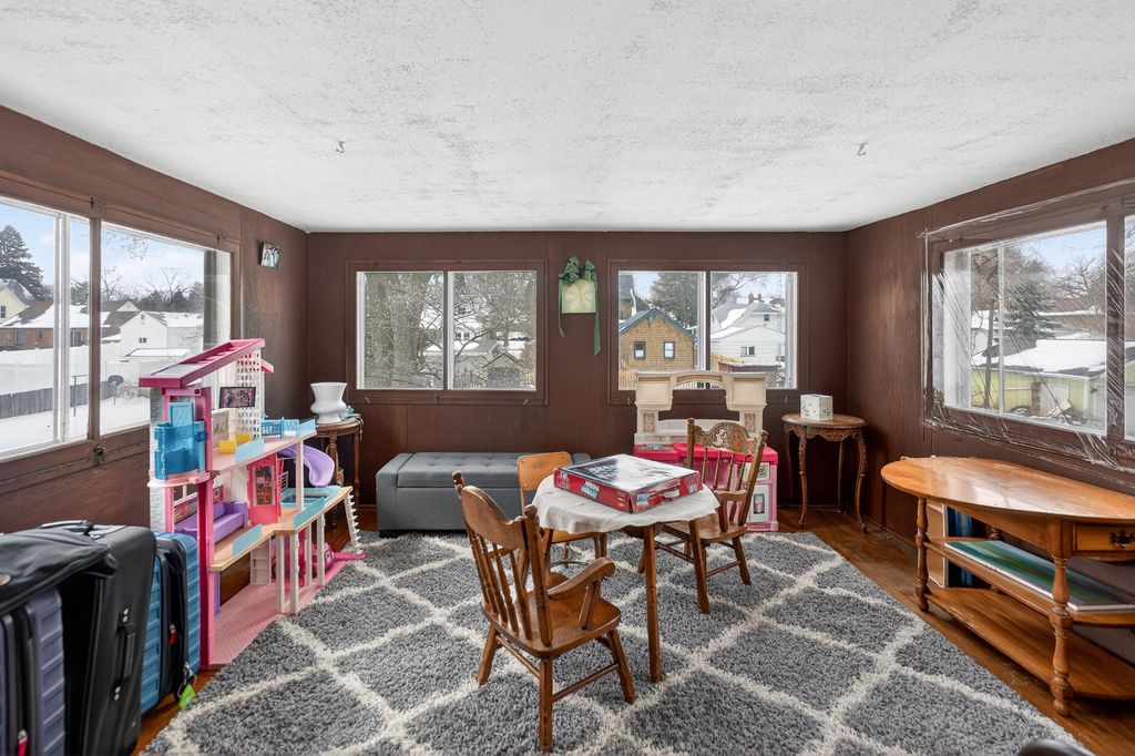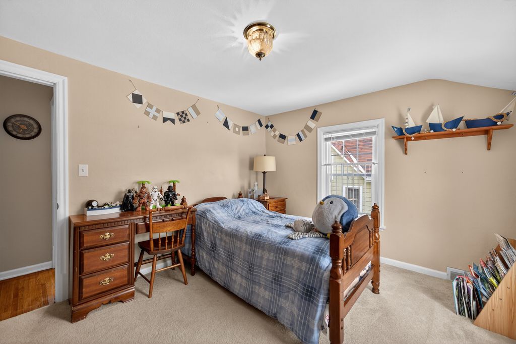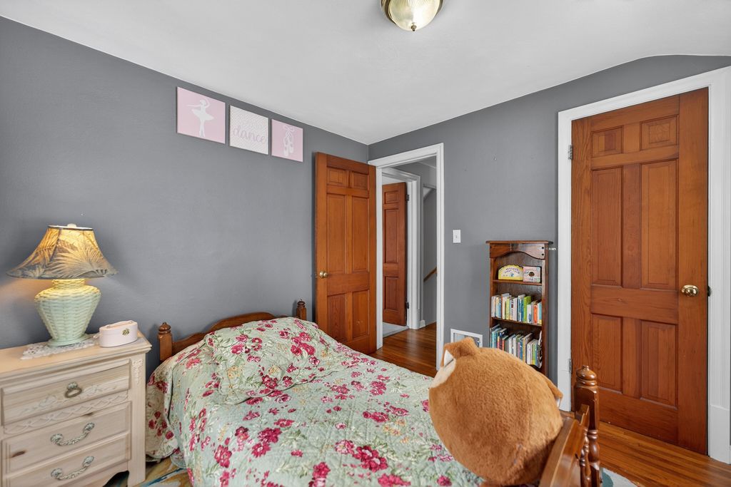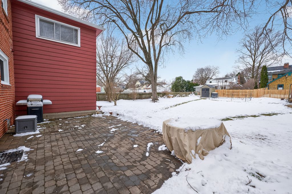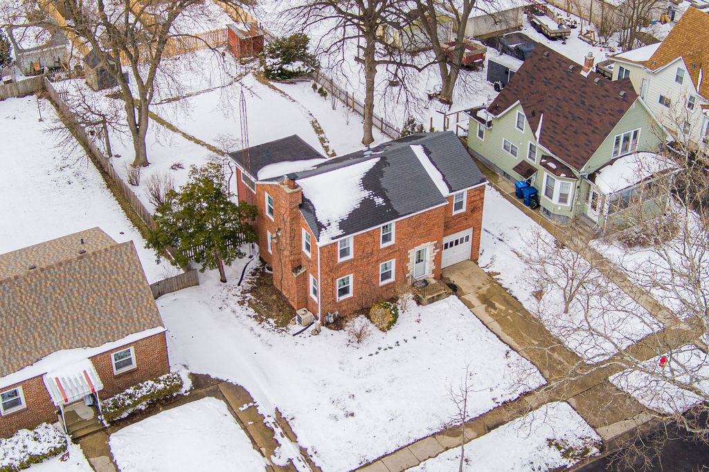 Charming 2-story colonial brick home on a quiet street is a must see. Welcome to this inviting 4 bedroom, 1.5 bath home full of character and natural light. Step inside to find beautiful hardwood floors and spacious living room centered around a cozy wood-burning fireplace with a stunning stone surround accented by original built-in shelves. The many windows throughout the home create a warm and airy atmosphere. The bright kitchen features a range with a flat glass cooktop, a built-in microwave and a dishwasher for convenience and easy clean-up. The dining area offers easy flow for everyday living and entertaining. Upstairs, the primary bedroom features two closets for ample storage, plus a bonus room perfect for a playroom, office or hobby space. Enjoy outdoor living in the large fenced backyard, featuring a paver patio, two sheds and plenty of room to relax or garden. The attached 1 car garage adds convenience, and the quiet street provides a peaceful setting with no thru-traffic. Located close to schools and parks, this home combines comfort, function and location, ready for you to make it your own.