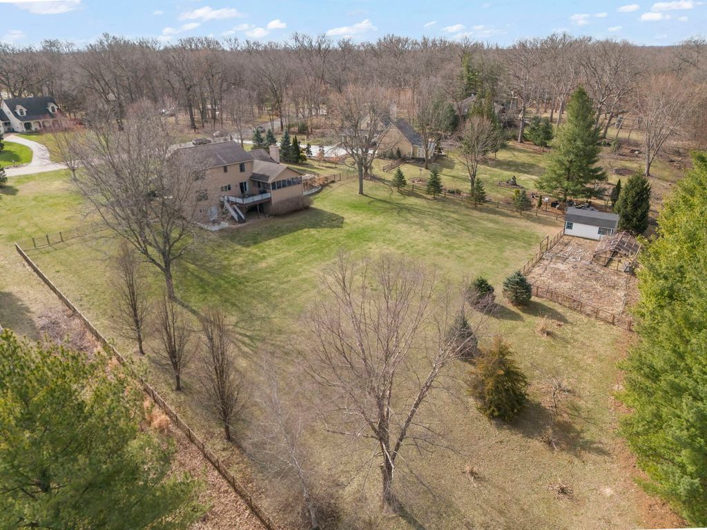 Enjoy all four seasons from the wraparound front porch, incredible screened cedar back porch, deck, FENCED yard! -or the many windows in this custom-built 2-story on 1.57 acres. A serene retreat that radiates comfort and joy. Interior highlights: *White cabinetry kitchen with large island and eat-in area overlooking the deck and backyard, Vaulted family room with full masonry fireplace and French doors to a tongueandgroove cedar screened porch that you will never want to leave! Formal living and dining rooms. Large open foyer and main-floor laundry/mud room Upstairs: 2 fully-renovated baths and 3 spacious bedrooms with expansive views. Walk-out finished basement: recreation room, 4th bedroom (exterior door + large closet), additional living area, generous storage, and a 3rd full bath. Side-load 3-car garage plus a smaller 4th bay used for lawn equipment/storage. New shed and chicken coop 2025! High End Water treatment system installed 2025! The water treatment is top of the line- you can't even spend any more money to make it better! $15,000-The system consists of two different particulate filters, an iron filter, water softener, as well as a finishing/chlorine filter. The system is paired with a powered anode rod. The combination of these leave you with the cleanest well water you can get. *Private 1.57acre lot bordered by Kendall County Forest Preserve Updates & improvements: *2 new remodeled bathrooms with upgraded fixtures *New carpet on the second level *All new paint & beautiful decor *New A/C *Refinished hardwood, new carpet, fresh paint *Cedar deck and finished rec room in basement, 4th bedroom & full bathroom. Minutes from a boat/canoe launch on the preserve - excellent fishing, hiking and bald eagle viewing --Quiet Foxhurst neighborhood - private, peaceful, yet close to shopping and amenities --Perfect for outdoor entertaining: campfires and backyard fun! Fenced Yard! --This is the one you've been waiting for - move in and start enjoying country living with modern comfort. #callingallnaturelovers