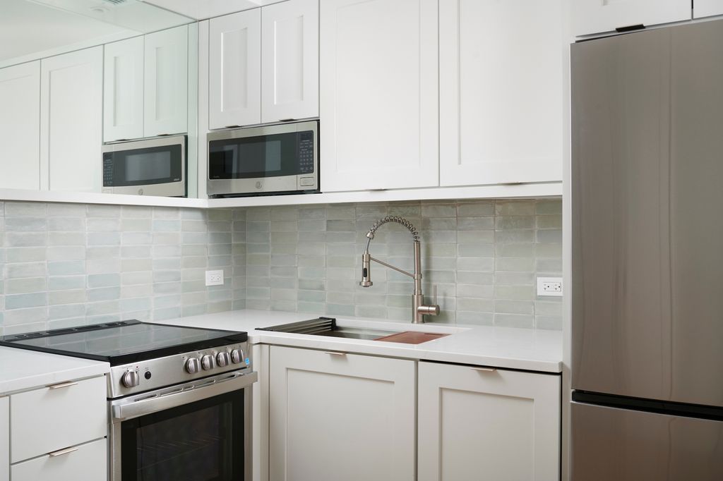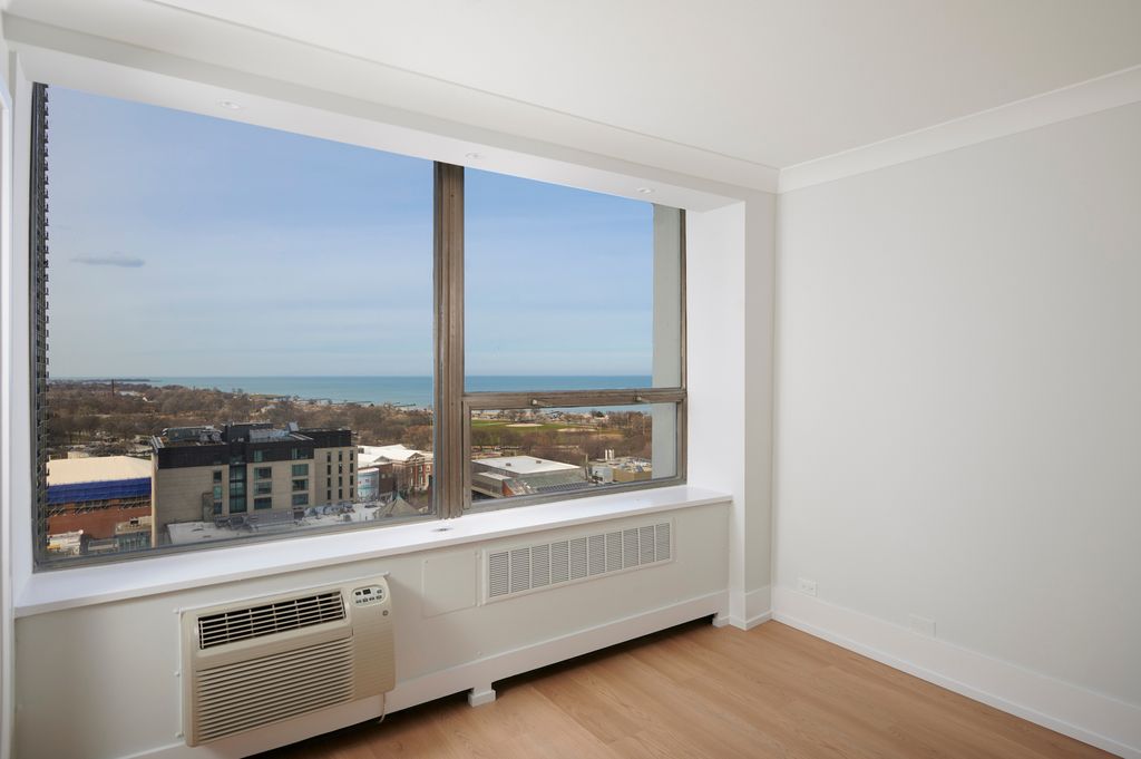 Some homes ask you to imagine what they could become. This one is designed so you can focus on how you want to live in it. From the moment you walk in, the lake quietly becomes part of the home. It appears from the living room, from the bedroom, and reflects back through the kitchen. The north-facing exposure brings soft ambient light throughout the day without the direct heat that often comes with lakefront views. Just beyond the glass, a private balcony opens to clear views toward Lake Michigan, a feature increasingly difficult to find in the city, especially in a home where the interior is thoughtfully rebuilt. The renovation is designed by Dennis Burgener of McWilliams Burgener Architecture with a restrained architectural approach that keeps the space calm and intentional. The entry subtly compresses before opening into the home where the light and view take over. In the kitchen, glossy aquamarine Zellige tiles catch the light in soft variations that echo the lake outside. A butcher block island on locking casters adds warmth and flexibility, easily repositioned depending on how the space is used. The bedroom sits directly at the window so the bed faces the lake each morning. The layout flows into a pass-through dressing area that leads to the bath, similar to the arrangement found in boutique hotel suites. The bathroom continues the calm palette with aquamarine tiled niches, a preserved soaking tub with built-in deck, overhead and handheld shower fixtures, and a quiet, soft-closing pocket door. The result is a space that feels composed yet open to interpretation, ready for someone with taste to bring it fully to life with their own furniture, art, and personality........... Walkscore 99 | TransitScore 79 | BikeScore 92 - Divvy station near | Redline: .4 mi. - Brown/Purple line: .4 mi - Zip car .1 mi away | 10-minute Lyft, 21-minute CTA ride, or a 15-minute cycle to The Loop.