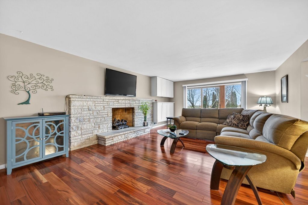 Charming mid-century home set on a one acre in Rockford, this classic brick ranch offers an inviting open floor plan filled with warmth and character. The spacious living room features a stunning stone fireplace and gleaming Brazilian Koa floors, flowing seamlessly into a large dining room-perfect for entertaining. The updated kitchen is open and bright, complete with an island, breakfast bar, granite countertops, and stainless-steel appliances. A cozy den with a second fireplace leads to a quaint screened-in patio overlooking the beautiful, private yard. The home includes 3 bedrooms, 2 updated full baths, and convenient main floor laundry. The basement adds even more charm with a fireplace wall. Enjoy the benefit of a county tax rate, along with exceptional space for vehicles and hobbies with a two-car attached garage plus an additional24x24 detached garage. Perfect location with charm and character galore!