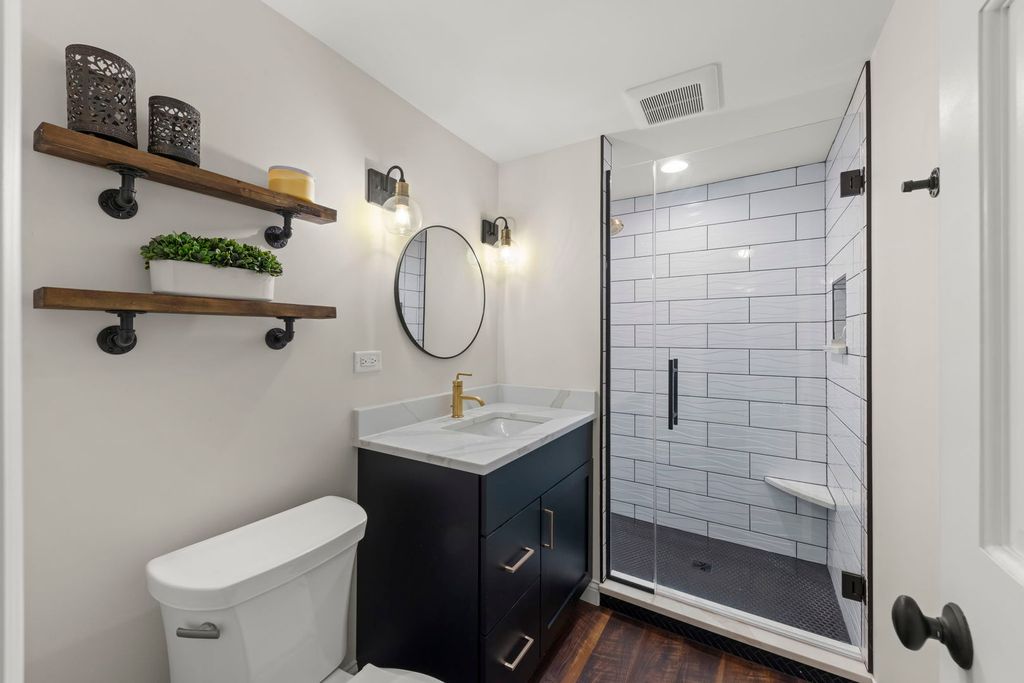 Welcome to this stunning, fully remodeled 4-bedroom, 2-bath quad-level home, where thoughtful design, timeless finishes, and custom craftsmanship are showcased throughout. No detail has been overlooked-every major system and interior space has been updated. Improvements include roof and gutters; primary bedroom (2024); bathrooms and water heater (2023); epoxy floors and custom wall in the garage (2022); plumbing updates (2018-2022); high-efficiency A/C (2021); Pella windows, basement and sump pump (2020); kitchen and electrical panel (2018); furnace (2017); trim throughout; and extensive professional landscaping, including paver patios, retaining walls in front and back, flagstone walkway, drain tile system, and fence (2016-2018)-and so much more. The main level features an open living and dining area with beautiful windows that fill the space with abundant natural light, complemented by hardwood floors that continue up the stairs, through the bedroom-level hallways, and into the primary suite. The updated kitchen includes custom maple cabinetry, quartz countertops, stainless steel appliances, a farmhouse sink, a tray ceiling with crown molding and recessed can lighting, a pallet accent wall, a pantry, and a three-window canted bay, creating a bright and welcoming space. Upstairs, three bedrooms offer generous closet space, including an updated primary bedroom with a custom wood ceiling, recessed lighting, and a tasteful accent wall. There is a full bathroom with a double sink and a large shower with dual shower heads, and two large storage closets plus a linen closet. The lower level includes a full bathroom and a cozy, inviting family room, ideal for movie nights or everyday relaxation, with large windows that fill the space with natural light. The finished basement features a spacious recreation room, a generous laundry area, and a large closet for excellent storage. A fourth bedroom is perfect for guests or a home office. Additional Features: Mature trees enhance the sense of privacy and calm outdoors. Thoughtfully designed outdoor living spaces include professionally installed paver patios and retaining walls, a flagstone walkway, and a cottage-style shed along the drive. Combining timeless style, modern updates, and thoughtful design, this home is ready for you to make it your own.