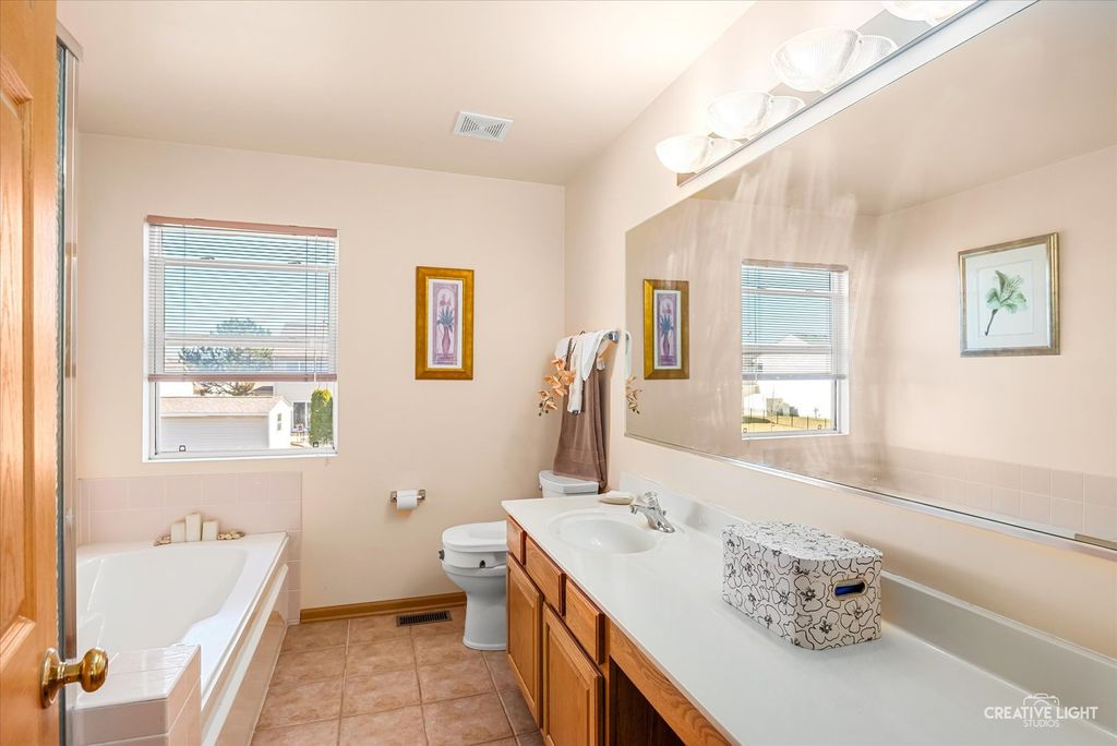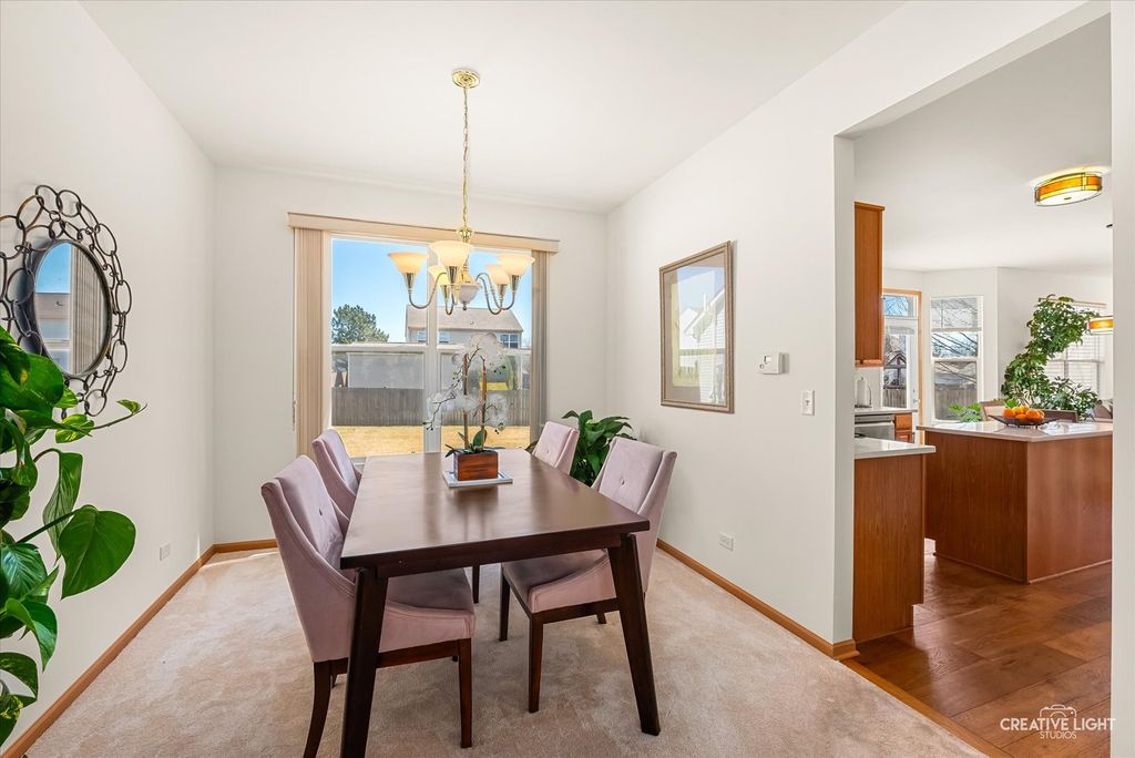 Impeccably maintained and beautifully updated, this stunning two-story home in North Plainfield offers the perfect blend of comfort, style, and functionality. This home features open space living with 3 spacious bedrooms plus a versatile loft which can easily be converted to a 4th bedroom, 2.1 bathrooms, and a first-floor den-ideal for a home office or flex space. The beautifully updated kitchen features quartz countertops, stainless steel appliances, and a plethora of cabinets and storage, making it both stylish and highly functional. The main level showcases newer engineered hardwood flooring and carpet, adding warmth and modern appeal throughout the living spaces. Upstairs, the primary suite offers a private retreat, complete with a double doors, walk-in closet, sitting room, and full en-suite bathroom. The powder room and hall bathroom have also been remodeled, offering fresh finishes and thoughtful updates. The unfinished basement provides excellent storage or the potential for additional living space to suit your needs. Additional highlights include an attached 2-car garage, private cul-de-sac location and a big yard with an oversized brick paver patio. Located in the highly sought-after School District 202, the home is within walking distance to Heritage Grove Middle School and Plainfield North High School. Enjoy a fantastic location with convenient access to Interstate 55, along with nearby shopping and dining in South Naperville, and the charm of Downtown Plainfield. This is a wonderful opportunity to own a beautiful home in one of North Plainfield's most desirable neighborhoods Heritage Meadows.