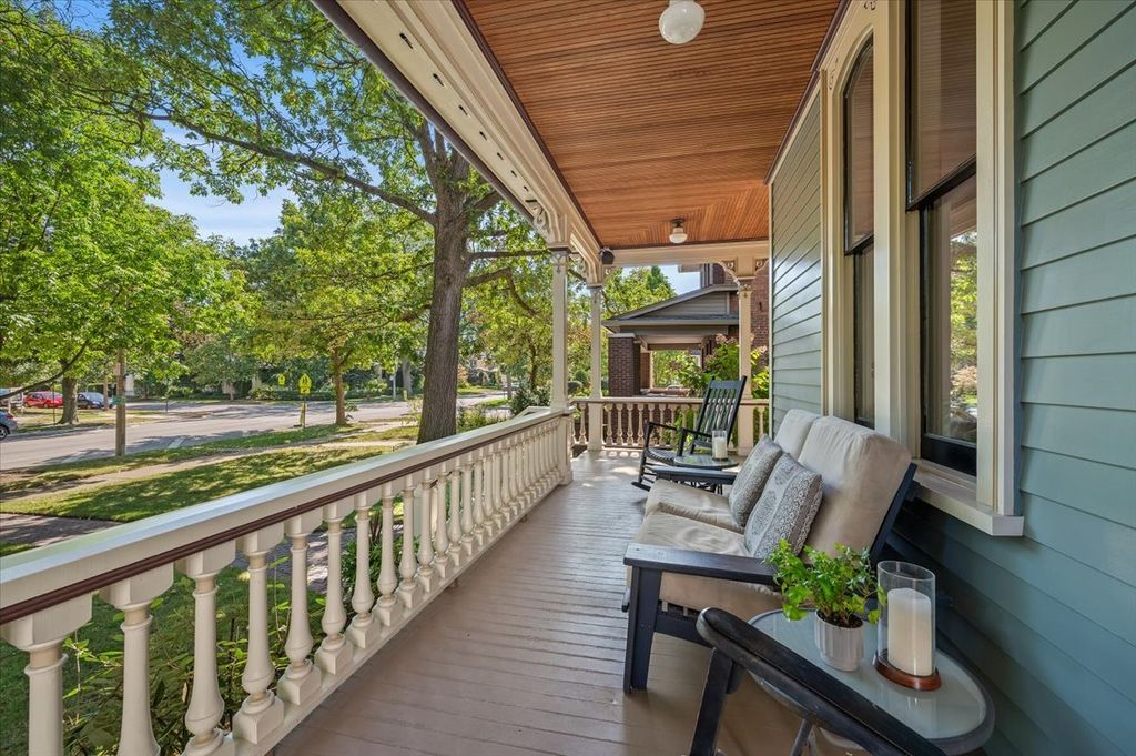 A rare and beautifully preserved Italianate residence built in 1871, this extraordinary home is a true testament to thoughtful restoration and architectural integrity. Guided by acclaimed architect John Thorpe, the property has been meticulously returned to its original elegance while offering refined, updated spaces for modern living. From the moment you enter, the home is defined by light, scale, and authenticity. Stunning windows illuminate each room, creating spaces that feel intentional, warm, and quietly impressive. The entry opens to an inviting family room framed by bay windows and anchored by a wood-burning fireplace. An elegant archway leads to a gracious living room overlooking the wraparound front porch, where French doors create a seamless connection between indoor and outdoor living. The main level features a flexible and generously sized primary suite-currently used as a den-with an ensuite full bath. A formal dining room provides an ideal setting for entertaining and flows effortlessly into the light-filled kitchen. Here, historic charm meets culinary excellence with a chef's kitchen featuring a Sub-Zero, large gas range, original farmhouse sink, abundant cabinetry, and a charming eat-in area, all with views of the garden and backyard. The first floor also offers a dedicated laundry area with adjoining office space and excellent storage. The second level includes three distinctive bedrooms, each showcasing original transom windows, trim, and woodwork, along with a beautifully updated full bath. Natural light fills each space, enhancing the home's historic character. The exterior restoration is exceptional, with careful attention paid to every detail. The home was fully repainted in 2024, and the original windows were thoughtfully restored. Outdoor living is equally impressive, featuring a welcoming wraparound front porch and a side deck located just off the dining room-an ideal space for entertaining-leading to a large paver patio below. The expansive backyard includes a fire pit area and a dedicated shed housing firewood, a pizza oven, and a smoker. Mature landscaping, flowering trees, a newer fence, and a three-car garage complete the property. This distinguished home has earned both the Cavalcade of Pride Award and a Historic Preservation Award and is ideally located in the heart of Oak Park, just steps from schools, the Farmers Market, shops, Ridgeland Commons, parks, and more.