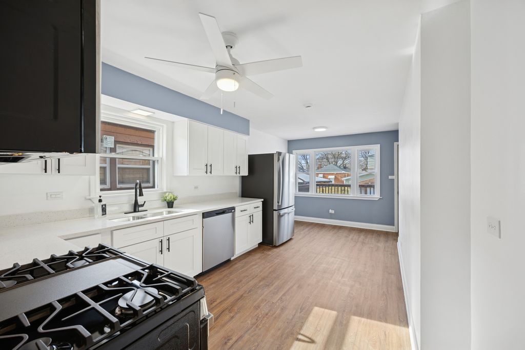 Welcome to the popular Washington Heights neighborhood! This beautifully remodeled 4-bedroom sun filled home features gleaming hardwood floors throughout the main living areas and luxury vinyl flooring in the kitchen and basement. The eat-in kitchen offers custom shaker cabinetry and stainless steel appliances. Both full bathrooms are thoughtfully updated with soaking tubs, creating a spa-like feel. The fully finished basement provides exceptional additional living space, including a large bedroom, family room, separate office, laundry room, and ample storage space. Recent updates include new AC, new windows, new plumbing fixtures, new LED lighting, a new electrical panel, and a newer roof. Step outside to enjoy a newer, expansive deck, perfect for entertaining, along with a 6-ft privacy fence and a 2.5-car garage. Conveniently located just minutes to the Metra station, shopping and local restaurants. Low taxes with no exemptions. Schedule your showing today!