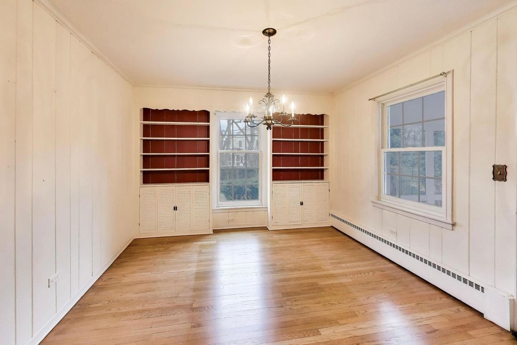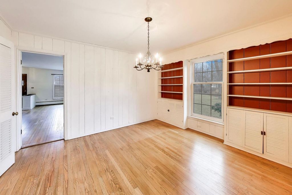 Secluded Scarsdale Sanctuary - enchanting setting for this traditional Colonial home offers a "full" basement situated on one of the best tree canopy covered lots in sought after Scarsdale and almost no traffic. Wonderful House options - enjoy as current owners have for 40+ years or expand the current footprint by adding primary suite over garage/kitchen (32'x12' see photos) roof top w/spacious 2nd floor landing/oversize window - perfect for future primary entrance. Or create family rm space using current attached garage space (21'x11' interior") and work through adding new garage on east side of home. Oversize living rm w/fireplace allows sep dining rm to become family rm w/door out to screen porch. Or - build the home of your dreams surrounded by village owned easements to enjoy as play area - views. Kitchen has table-space eating area, suite of newer Whirlpool stainless steel appliances and Quartz countertops. Beautiful hardwood floors and 1st & 2nd floors. Two large bedrooms give flexibility of which you use as primary. Finished basement with rec - family room space, wall of closet storage, huge utility/laundry room and separate hobby - tool room. Best of both worlds - hot water baseboard heat - separate central air attic unit system. Updated electrical service 2023, hot wtr htr 2024, overhead sewer and sump-pump w/battery back-up, outside cleanout access. Located just minutes from downtown Arlington Heights, this home is close to Metra, parks, restaurants, and shopping. Enjoy the shaded yard and extended grass space of vacated street & parkway lawn - kind of a cul-de-sac lot. Just a walk-path to Shaag Park & Playground! Families will appreciate the top-rated schools-Dryden Elementary, South Middle, and Prospect High School-all within close proximity. A prime location, in one of the northwest suburbs' most sought-after communities.