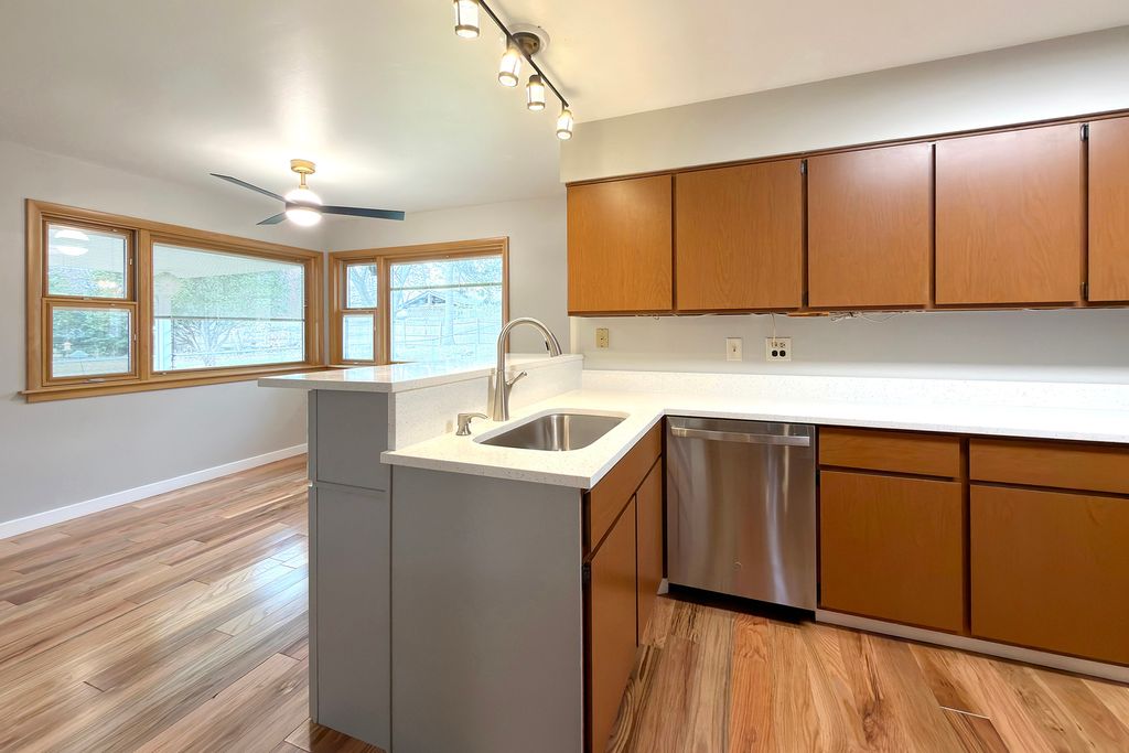 Solid spacious all brick ranch in a great neighborhood with a huge, fenced yard is a few blocks from Clearwater Park with pond and tennis courts has been redecorated and is in excellent condition. There is a formal covered front porch. Come inside and be greeted by red oak hardwood floors throughout, living room with classy bay window and a large dining area. The kitchen has lots of cabinets, granite countertops and new stainless appliances (never used). There is a huge eating area as well as a breakfast bar. There are 2 pantry closets. If you go out the back door off the eating area you will find a large back porch which is totally covered by the home's roof. You can barbeque in the rain and enjoy your dinner and not get wet. There are 2 full baths on the first floor, one with a tub, the other with a walk-in shower. The basement is a true full basement under the entire first floor. It is divided into a fun big rec room, laundry room with new washer and dryer and an immense workroom with workbenches and tons of storage.