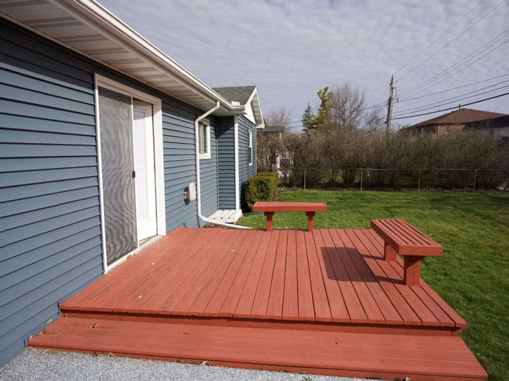 Looking for a beautiful RANCH in a fantastic, central location? THIS IS IT! This home features 2 large bedrooms and 3 baths in the highly desired Eastgate neighborhood. Home is located near shopping, restaurants, Veterans' Parkway, and you can even walk to State Farm. Updates include exterior vinyl siding (2023), epoxy finish on the patio and walkway (2023), A/C (2014) and updated bathrooms and windows. Enjoy the peace and quiet using the covered sitting areas in the front and the nice deck and patio in the rear. The oversized 2 car garage comes with cabinets and extra space for equipment and toys. There is lots of natural light with many windows and plenty of storage (closet) space as well. Property is sold AS-IS. THIS WON'T LAST LONG!