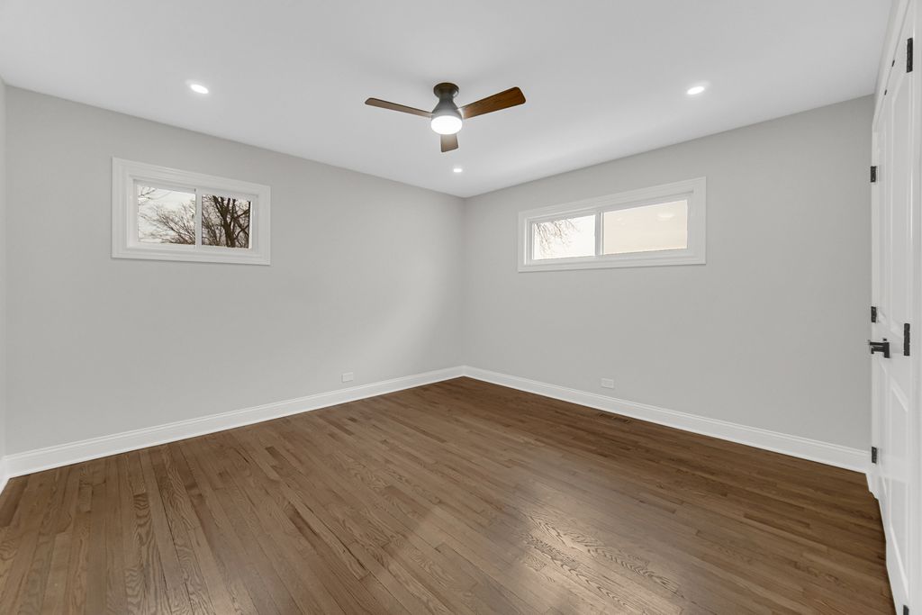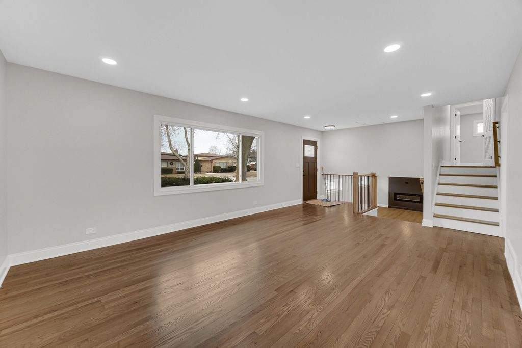 Set on an oversized corner lot in Morton Grove, this home delivers something you almost never see: Over size-lot presence paired with a complete, permitted gut renovation. From the moment you arrive, the transformation is undeniable - new roof, James Hardie siding, new windows, tuckpointing, new entry doors, and a brand-new concrete driveway and walkways surrounding the entire home. The curb appeal is matched only by the quality behind the walls. Inside, everything is new - electrical, plumbing, HVAC, insulation - all fully permitted and village approved. This isn't a surface-level flip. It's a structural reset designed for long-term peace of mind. The kitchen blends timeless and modern with white shaker cabinetry, quartz counters, under-cabinet lighting, and LG stainless appliances. Refinished hardwood floors anchor the main level, while the finished lower level offers flexible living with a fourth bedroom perfect for guests, office space, or extended family. Updated bathrooms feature a custom walk-in shower, new tub, Modern fixtures, LED mirrors, and sleek vanities. The garage includes epoxy flooring and EV-ready wiring - and yes, even the washer and dryer are brand new. Home is near park and public school.