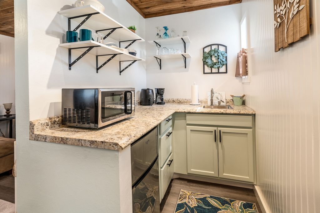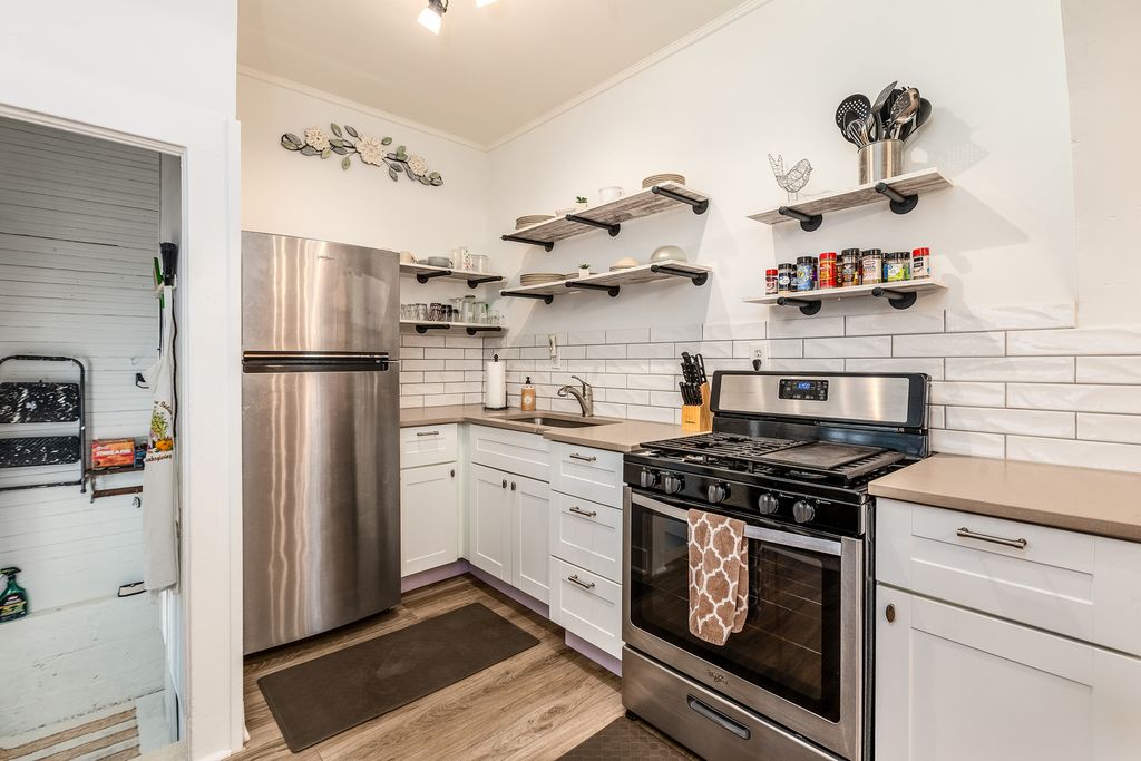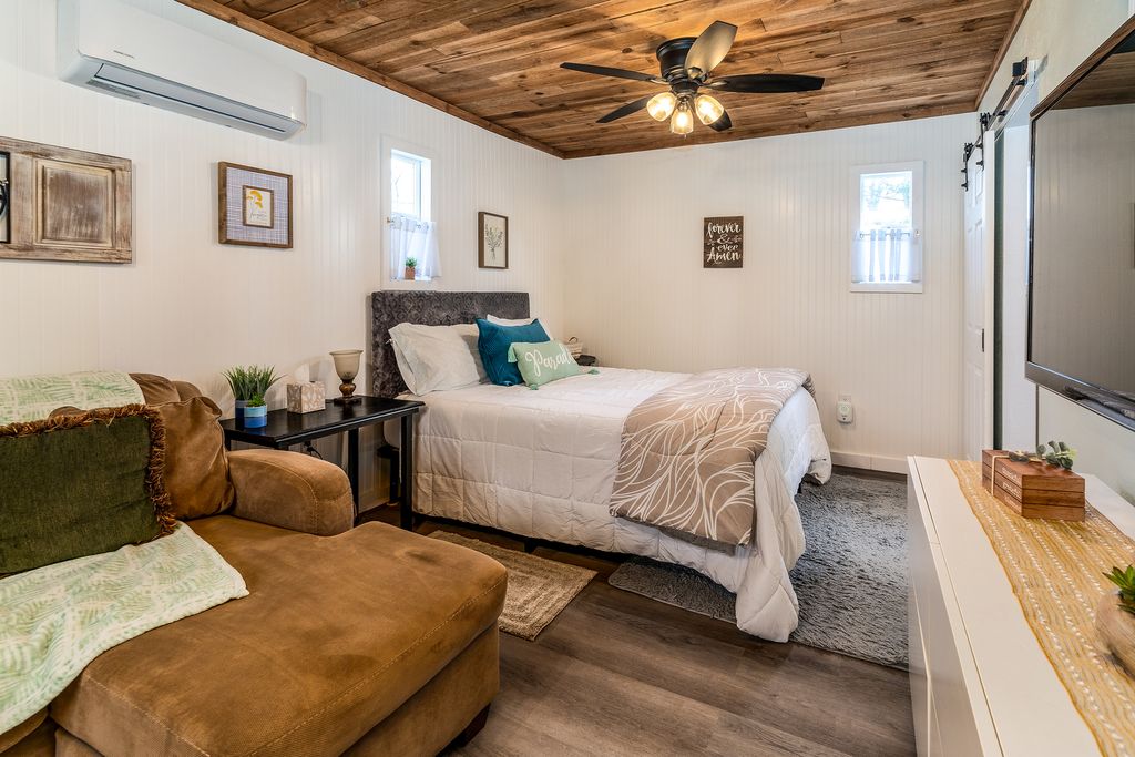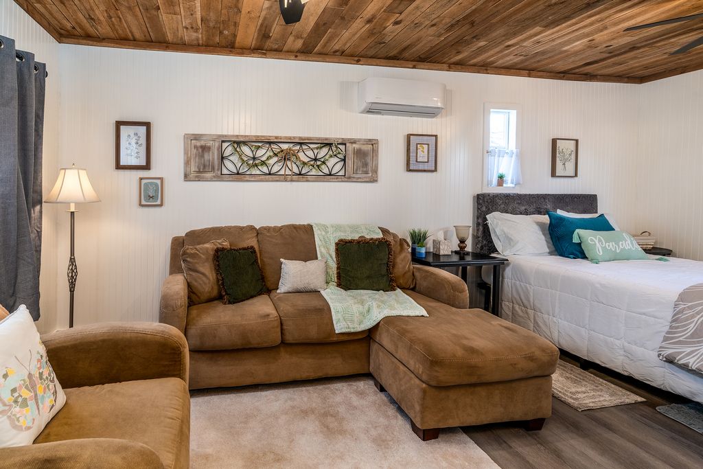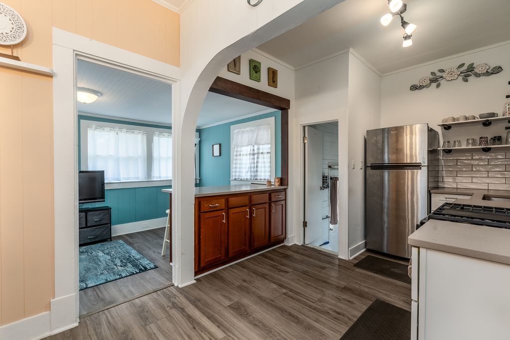 This fantastic bungalow just south of SIUC blends classic charm with thoughtful updates throughout. Inside, you'll find tall ceilings, beautiful wood floors, and abundant natural light that create a warm and inviting atmosphere. The updated kitchen features newer appliances, quartz countertops, open shelving, and a smart layout with an adjacent dining space perfect for everyday living or entertaining. Both bedrooms are bright and welcoming with plenty of natural light, while the efficiently designed bathroom includes a tub/shower combo and excellent use of space. At the back of the home, a flexible additional living space provides the perfect spot for a sleeping space, home office, or playroom. The main house also includes a large basement offering exceptional storage along with space for a workshop, workout area, and laundry. Numerous improvements have been completed over the years, including updates to wiring and plumbing, as well as added structural supports in the basement. As an added feature, the property includes a fully separate stand-alone studio apartment renovated in 2022. This thoughtfully designed space features a kitchenette, full bathroom, and its own HVAC system, water heater, and separate electric meter-making it ideal for visiting friends and family or as a potential short-term rental. Offered furnished if the buyer desires, this is a rare opportunity to own a beautifully updated home with an extra income-producing unit in a prime location just south of campus.