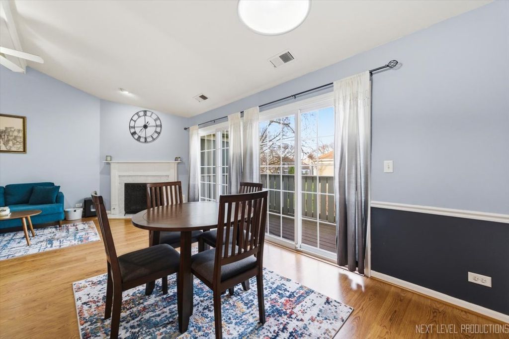 Exceptional Adare Farms condo is ready and waiting for you! The foyer has a parquet wood floor and opens to the living room with wood laminate floors, corner fireplace, big, vaulted ceiling and a slider to the deck! The dining room has a slider that leads out to the deck too and a pass thru to the kitchen. The kitchen offers white cabinets, breakfast bar and all appliances. There is a convenient laundry room off the kitchen with cabinets. The primary bedroom has 2 wall closets, ceiling fan/light and access to the full hall bath. Bedroom two has a built-in bookcase and 2 wall closets. Full hall bath with linen cabinet and shower/tub combo. Additional Half bath in Hall. Big 2 car attached garage with direct access to condo. Secure and Clean entry Foyer to building. Located minutes from downtown Wheaton and Central DuPage Hospital Campus and the DuPage County Fair Grounds too. Don't let this opportunity pass you by!