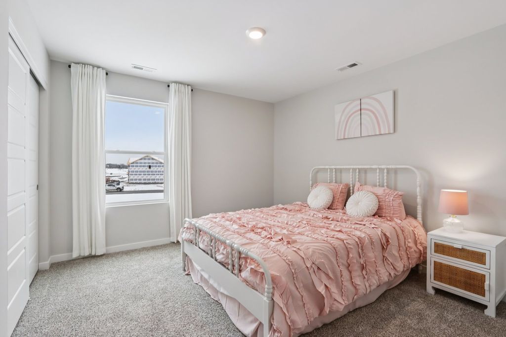 Discover yourself at 6209 Leinster Ln. in Tinley Park, Illinois, a beautiful new home in our Oak Ridge community. This home is move-in ready NOW! This large, scenic homesite includes a front porch and fully sodded yard. This Bellamy plan offers 2,052 square feet of living space with a flex room, 4 bedrooms, 2.5 baths, 9-foot ceilings on first floor, and full basement. Entertaining will be easy in this open-concept kitchen and family room layout with a large island with an overhang for stools, 42-inch designer cabinetry with soft close drawers. Additionally, the kitchen features a walk-in pantry, modern stainless-steel appliances, quartz countertops, and easy-to-maintain luxury vinyl plank flooring. Enjoy your private getaway with your large primary bedroom and en suite bathroom with a raised height dual sink, quartz top vanity, and walk-in shower with clear glass shower doors. Convenient walk-in laundry room, 4 bedrooms with a full second bath and a linen closet complete the second floor. All Chicago homes include our America's Smart Home Technology. Photos are of similar home and model home. Actual home built may vary.