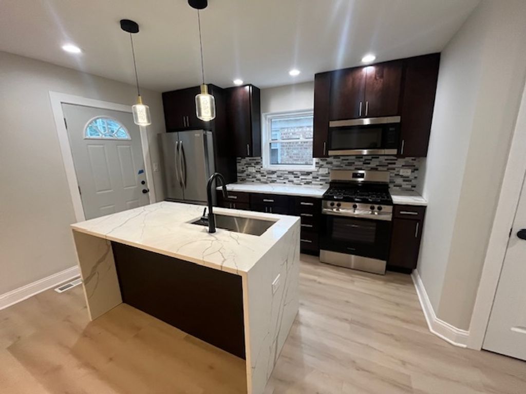 Everything to Love in this Home in the highly sought-after Jefferson township. This beautifully new 3-bedroom, 3-bath home offers an open and spacious layout perfect for modern living. Step into a dramatic family room with harwood floor. The gourmet kitchen features granite countertops, stainless steel appliances, a breakfast bar island, and an eating area-plus a separate formal dining. The first floor also includes a guest bath. Upstairs, the primary suite boasts a redesigned bath with tub and shower, along with a large walk-in closet all is new, soft-close cabinets, new countertops and fixtures, and stylish railings and two additional bedroom and another separate bathroom. Finish basement features living space, laundry room . Enjoy the backyard with fenced, 2 brick car garage. A new roof and gutters, everything is new add peace of mind. friendly neighborhood, this gem is just minutes schools, parks, libraries, Metra train stop, and the express way. Don't miss out-this exception