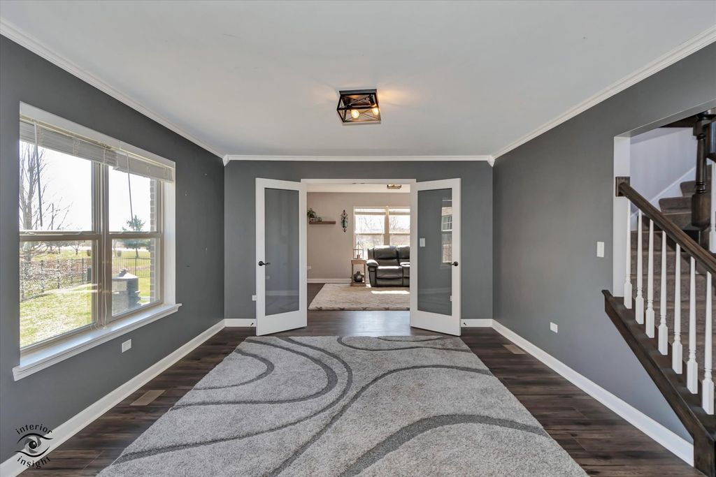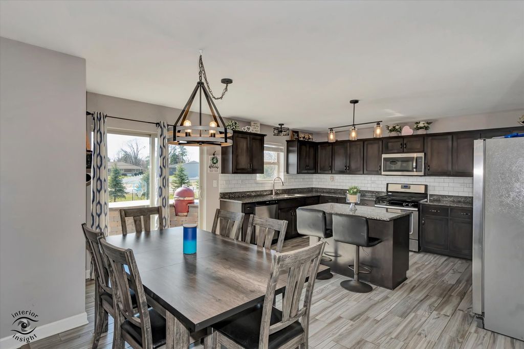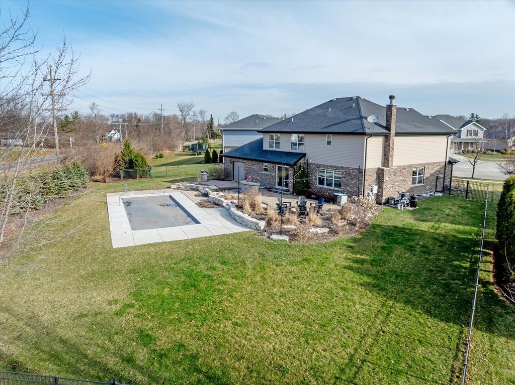 Welcome to your private retreat in the heart of Manhattan! Perfectly positioned on a quiet cul-de-sac near Round Barn Farm and located within the award-winning Lincoln-Way West High School district, this exceptional home offers approximately 4,300 square feet of finished living space on nearly a half-acre lot with breathtaking pond views just steps from your backyard. Designed for both everyday living and unforgettable entertaining, the outdoor space is truly a showstopper-featuring over 1,000 square feet of paver and concrete patio, a heated saltwater fiberglass in-ground pool with tanning ledge (2022), built-in firepit, grilling stations, and professional landscaping with flagstone accents, mature trees, and privacy-lined fencing. Inside, you'll find a grand foyer that opens to a thoughtfully designed main level with formal living and dining rooms, a private office with French doors, and a spacious family room with a wood-burning fireplace. The stunning eat-in kitchen is equipped with stainless steel appliances, granite countertops, a large island with seating, and abundant cabinetry. Upstairs offers four generously sized bedrooms-all with walk-in closets-including a luxurious primary suite with vaulted ceilings and dual walk-in closets. The finished basement adds incredible versatility with a fifth bedroom, spa-inspired bathroom with luxury tiled shower and sauna, gym area, family room, bar-ready space, storage room, and even a built-in dog kennel. Additional highlights include 3.5 total bathrooms, minimal carpeting (stairs only), a convenient laundry/mudroom, and an oversized 700+ sq ft 3-car tandem garage with a party door that opens to your backyard oasis. This is the one you've been waiting for-where luxury, space, and lifestyle come together seamlessly.